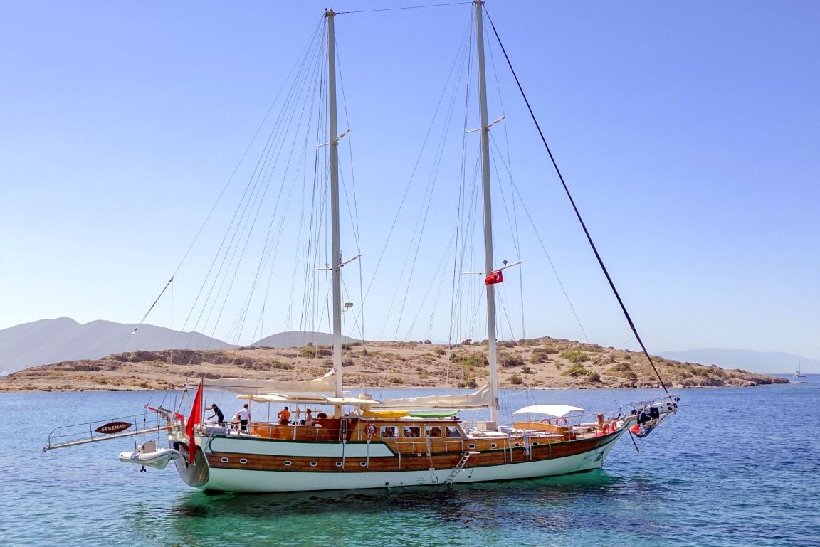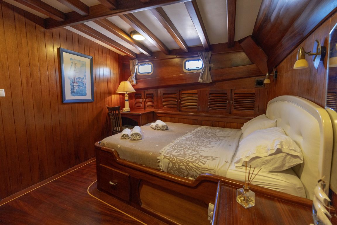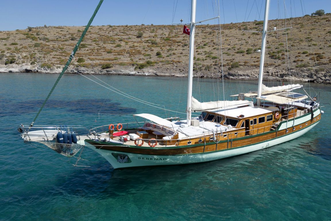 | Гулет Serenad, длиной 29 м, построен в 2003 г., рефит 2013-го. Имеет 6 кают: мастер, 2 дабл, 1 тройная и 2 твин; вместимость — 12 гостей. Все каюты с личными удобствами. Палуба оборудована большой обеденной зоной, мягкими сиденьями и местами для загара. Внутри — уютный салон с обеденной зоной и камбузом. Водные развлечения: тузик 60 л.с., SUP-доски, каноэ, снасти для сноркелинга и рыбалки. Двигатель Iveco 450 л.с., генераторы 22 + 22,5 кВА, скорость 10 узлов. Кондиционер — 8 часов в день. Serenad — отличное решение для семей и групп, которые хотят совместить комфорт и активный отдых на побережье Турции. |