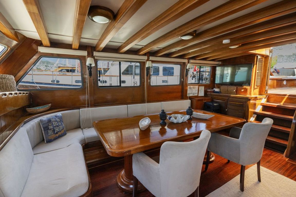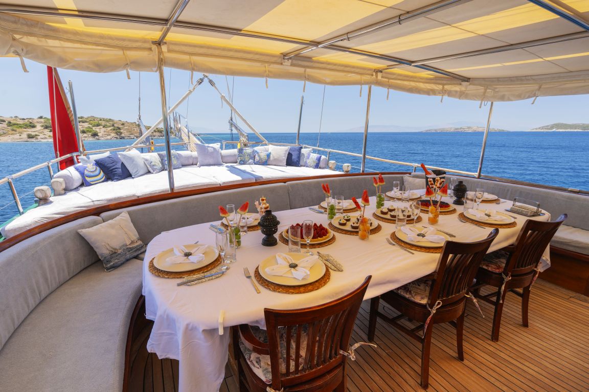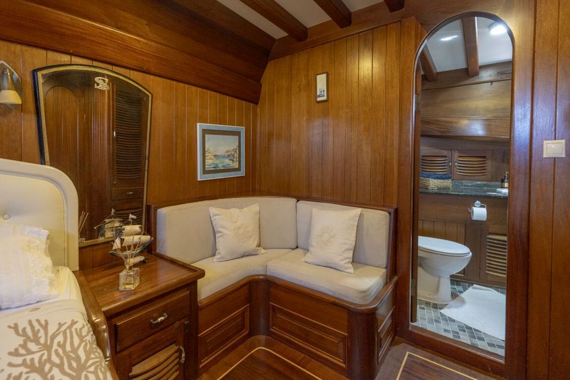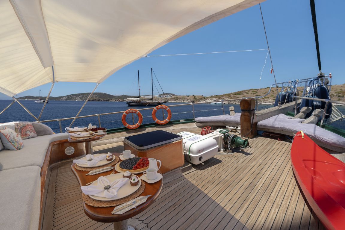 | Гулет Serenad, длиной 29 м, построен в 2003 г., рефит 2013-го. Имеет 6 кают: мастер, 2 дабл, 1 тройная и 2 твин; вместимость — 12 гостей. Все каюты с личными удобствами. Палуба оборудована большой обеденной зоной, мягкими сиденьями и местами для загара. Внутри — уютный салон с обеденной зоной и камбузом. Водные развлечения: тузик 60 л.с., SUP-доски, каноэ, снасти для сноркелинга и рыбалки. Двигатель Iveco 450 л.с., генераторы 22 + 22,5 кВА, скорость 10 узлов. Кондиционер — 8 часов в день. Serenad — отличное решение для семей и групп, которые хотят совместить комфорт и активный отдых на побережье Турции. |