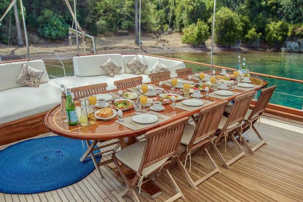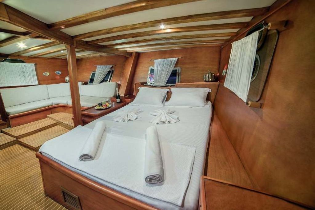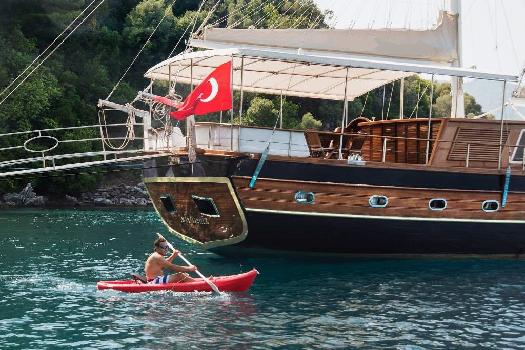 Есть каноэ, трубки, маски, ласты и простые рыболовные снасти, чтобы сделать время, проведенное вами в море, более приятным, а чтобы сделать время, проведенное вами на палубе, более веселым, есть набор для игры в рамми, нарды, игральные карты, DVD-плеер, музыкальная система и кондиционер. Наш опытный персонал на лодке будет к вашим услугам для приготовления пищи, обслуживания, ежедневной уборки и решения всех вопросов, которые могут вам понадобиться во время синего путешествия. Его капитан и команда, имеющие опыт в парусном спорте, отправятся в плавание, когда позволит погода, и вы сможете насладиться удовольствием от парусного синего круиза по Эгейскому морю. Чтобы испытать экономичный и приятный синий тур в турецких территориальных водах, мы приглашаем вас в синее путешествие на нашей яхте Sude Deniz.