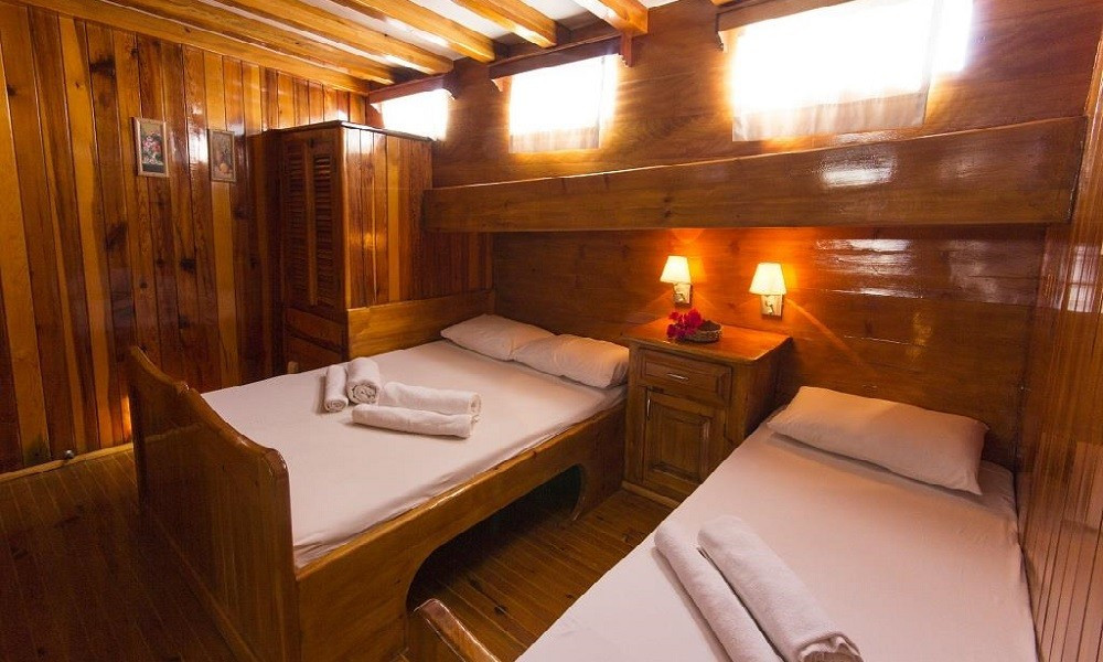 | Гулет Halil Aga 3 — это кеч длиной 30 метров, первоначально построенный в 1999 году и отреставрированный в 2016 году. На борту семь кают, включая три двухместные и четыре трёхместные, с максимальной вместимостью 18 гостей в турецких водах (12 за границей). Каждая каюта оснащена отдельной ванной комнатой и кондиционером, который работает с 6 утра до 8 вечера. Палуба оборудована удобными зонами для сидения, обеденной зоной под тентом и просторными местами для загара. Внутренний салон просторный, включает обеденную зону и бар. Для любителей водных видов спорта Halil Aga 3 предлагает широкий выбор оборудования: каноэ, виндсёрфинг, SUP-доски, подводные скутеры, дайвинг-оборудование, снаряжение для снорклинга и рыбалки. Судно оснащено двигателем Delphin мощностью 360 л.с. и генераторами на 20 + 27,5 кВт, что позволяет ему идти со скоростью 9 узлов. Halil Aga 3 — это профессиональный гулет, сочетающий простор, комфорт и разнообразие водных развлечений. |