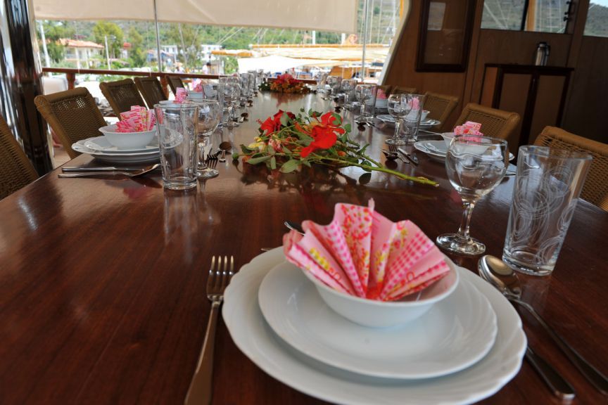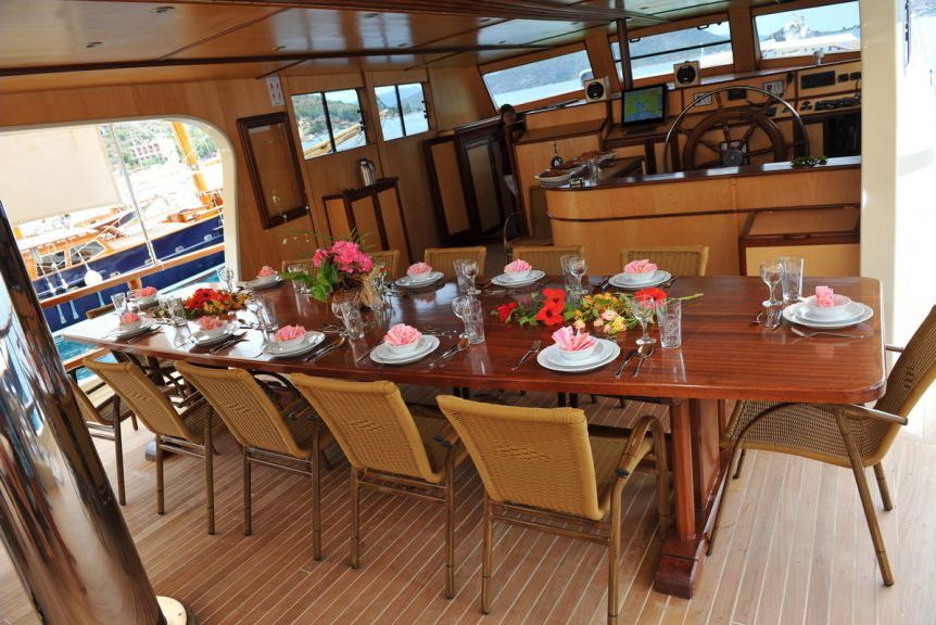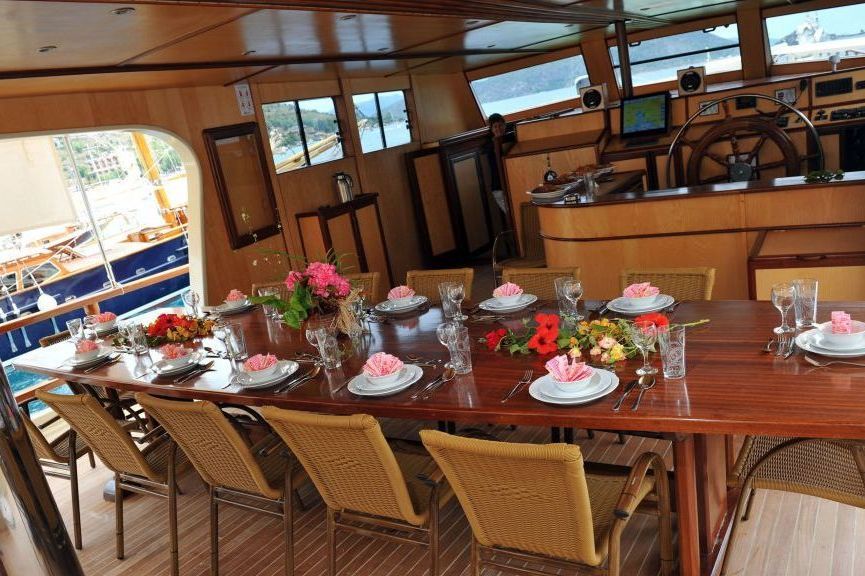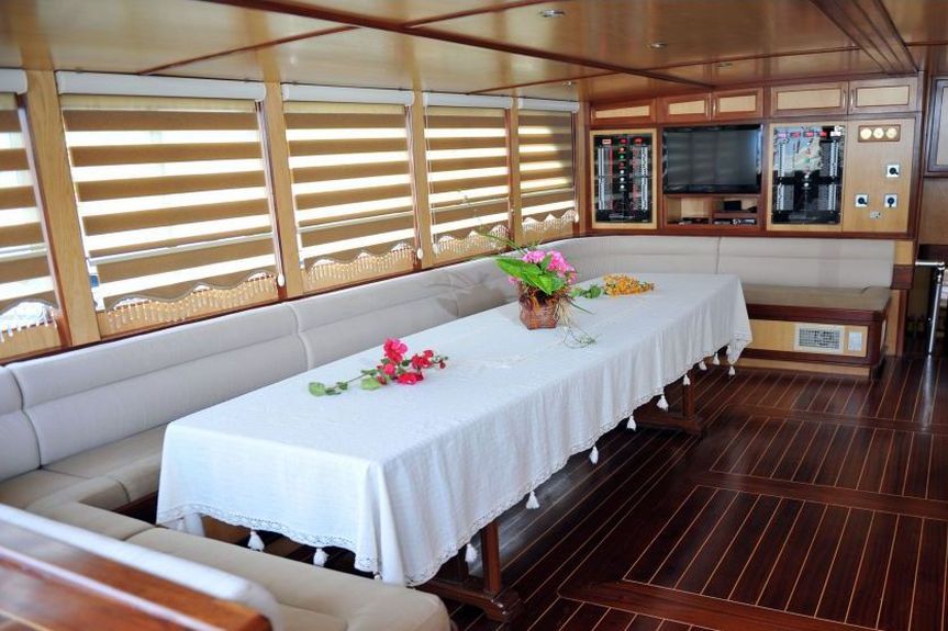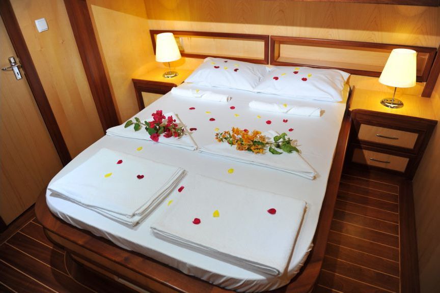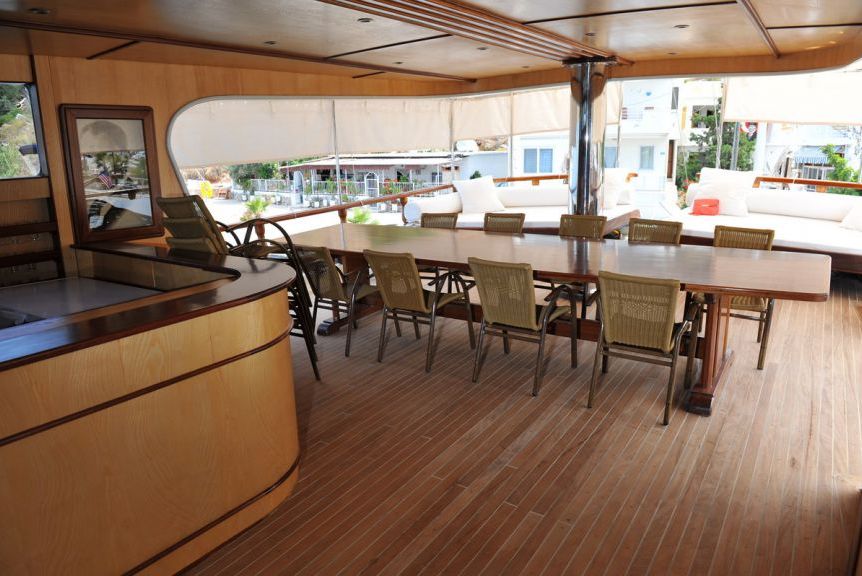 Яхта Kim Bu имеет достаточное количество ковриков для загара и зон отдыха для всех гостей, проживающих в 7 каютах. Кто эта яхта? 5 членов экипажа, каждый из которых имеет опыт и является профессионалом в обслуживании синего круиза, к вашим услугам для вашего комфорта во время вашего отпуска на лодке. Эта команда будет сопровождать вас на протяжении всего отпуска, занимаясь обслуживанием, приготовлением пищи, уборкой и организацией ежедневных мероприятий. Каюты для персонала полностью независимы от гостевых зон размещения, а уважение к частной жизни и профессионализм являются одними из самых строгих правил. Отзывы и рекомендации наших клиентов об аренде, которую мы осуществили с нашими Гулет и яхта Kim Bu в Бодруме или на греческих островах. Kim Bu дает стопроцентную гарантию удовлетворенности клиентов на нашей яхте.