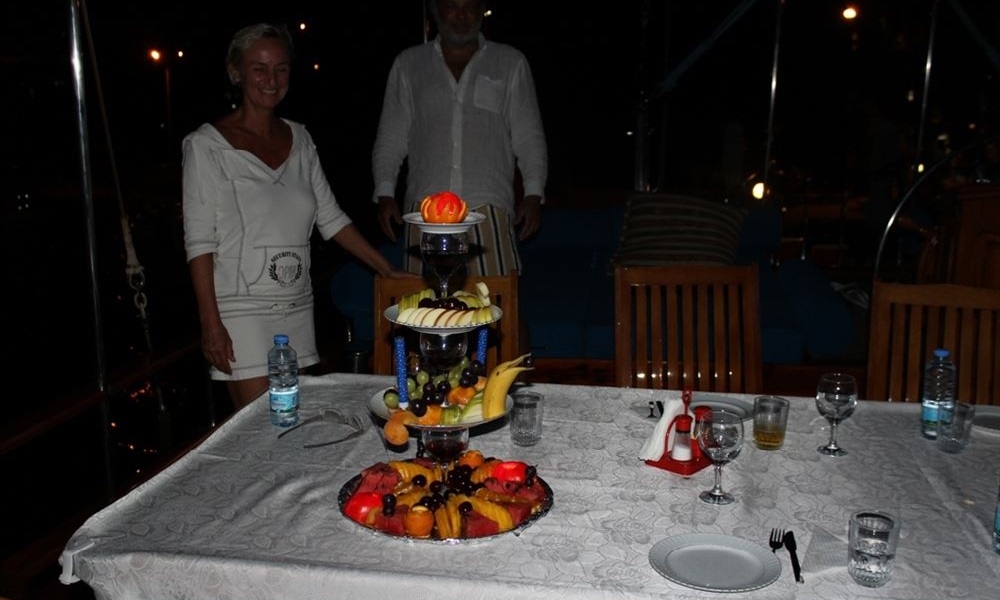 На нашей яхте Liebling достаточно ковриков для загара и зон отдыха для всех гостей, проживающих в 7 каютах. 3 члена экипажа яхты Liebling, каждый из которых опытен и профессионален в обслуживании синего круиза, к вашим услугам для вашего комфорта во время вашего отпуска на лодке. Эта команда будет сопровождать вас на протяжении всего отпуска, занимаясь обслуживанием, приготовлением пищи, уборкой и организацией ежедневных мероприятий. Каюты для персонала полностью независимы от гостевых зон размещения, а уважение к частной жизни и профессионализм являются одними из самых строгих правил. Отзывы и рекомендации наших клиентов об аренде, которую мы осуществили с нашими Liebling Гулет и яхта в Бодруме или на греческих островах, гарантируют стопроцентное удовлетворение клиентов на нашей яхте Liebling.