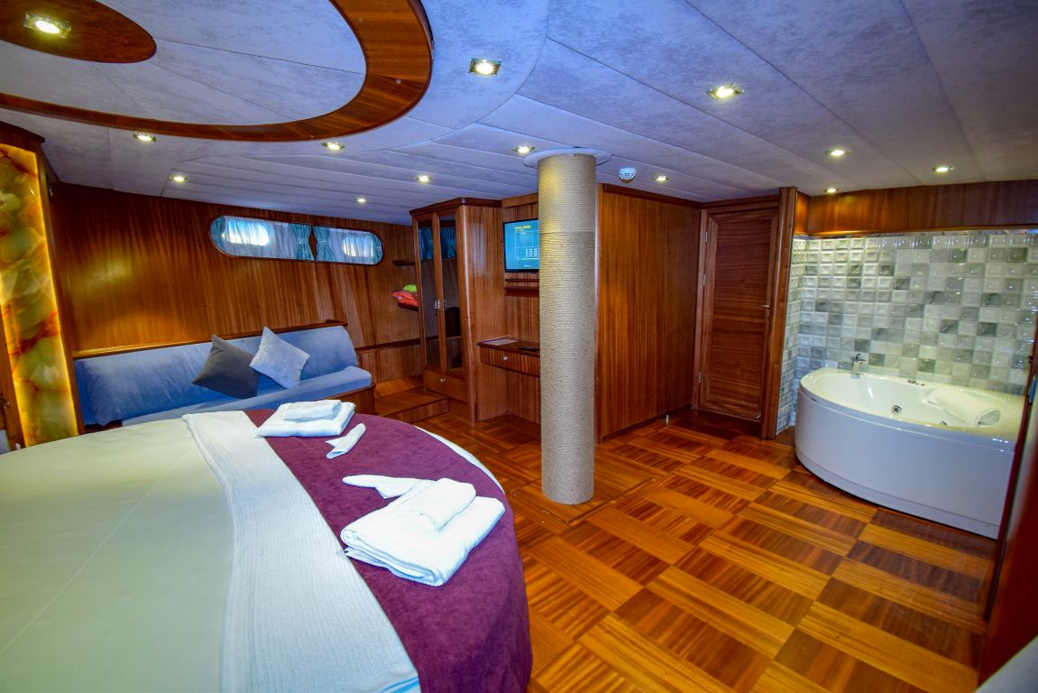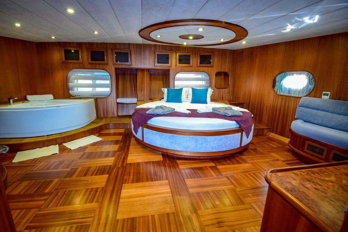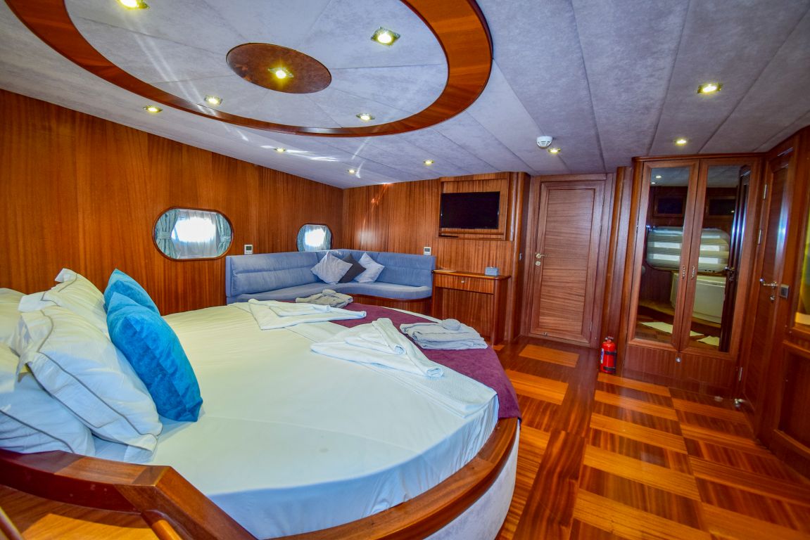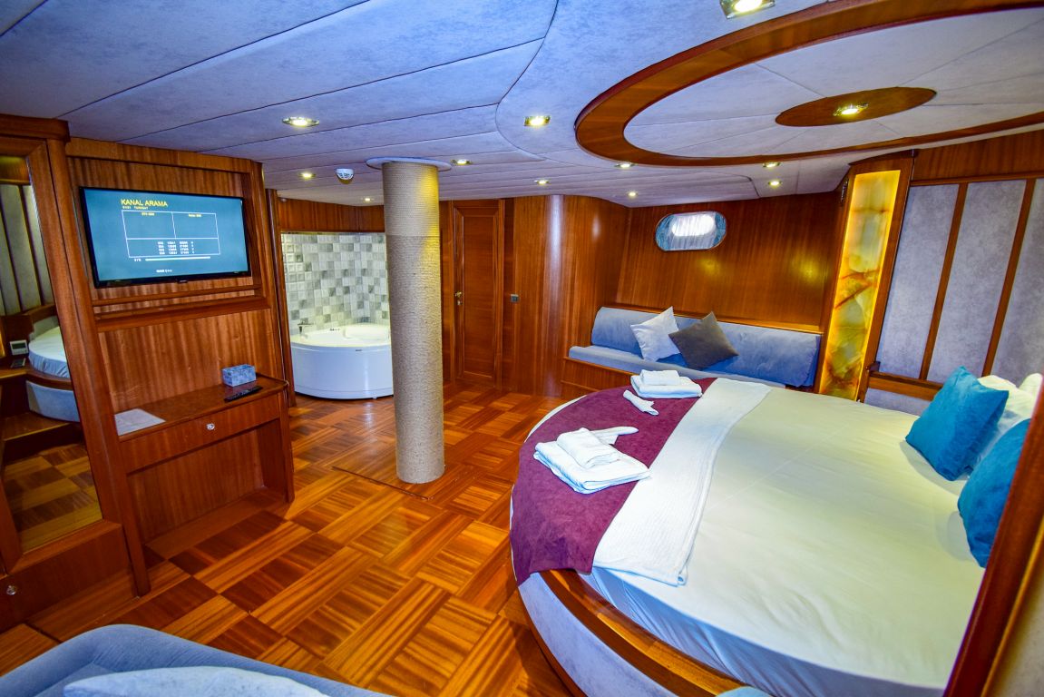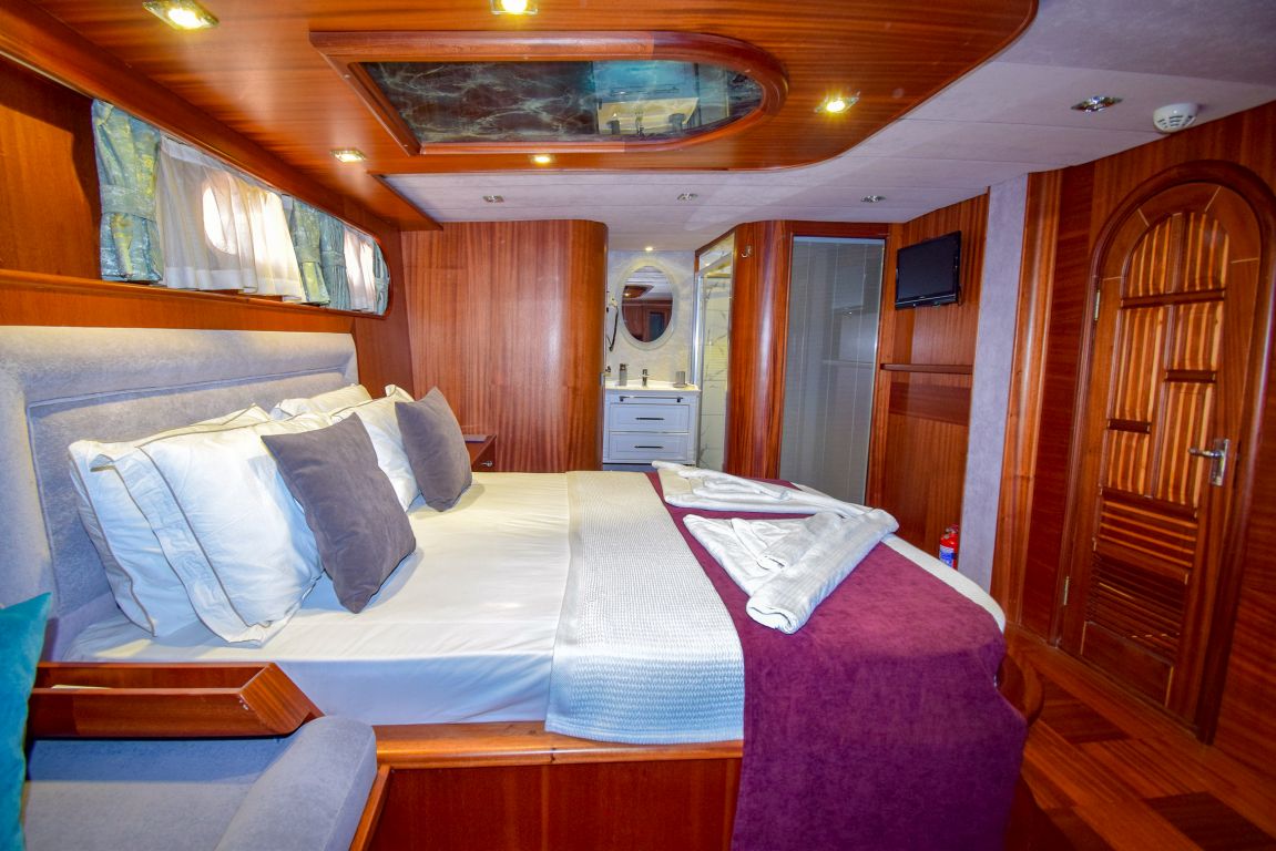 Она 32 метра с 7 каютами (2 люкса с джакузи, 2 мастер-каюты и 3 двухместные каюты) для размещения до 14 гостей. Каждая каюта полностью кондиционирована, имеет гардероб и ванную комнату с душем и туалетом в домашнем стиле. Гулет и яхта Ugur предоставляет профессиональный экипаж из 5 человек (капитан, повар, матрос, горничная и стюардесса) для высокого уровня гостеприимства. Ugur собирается удивить своих клиентов в этом сезоне своей ценой. |