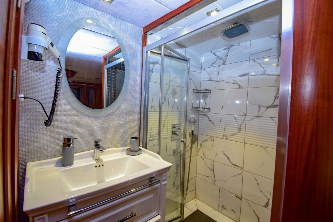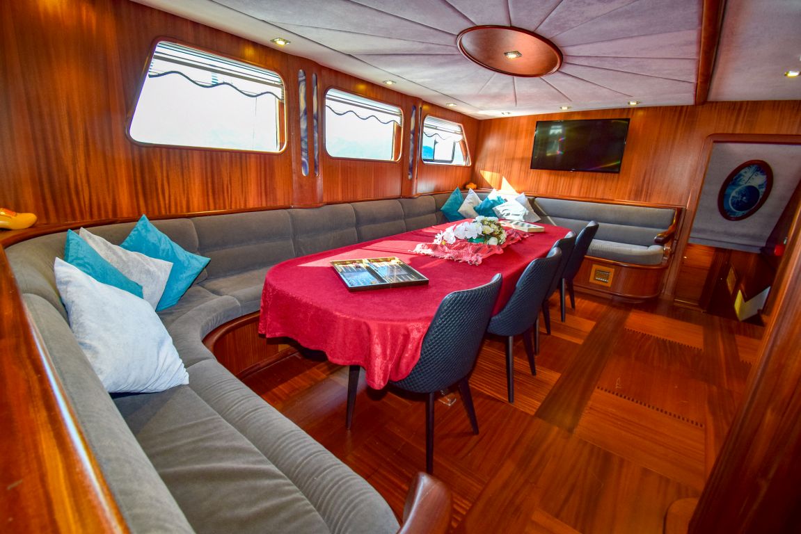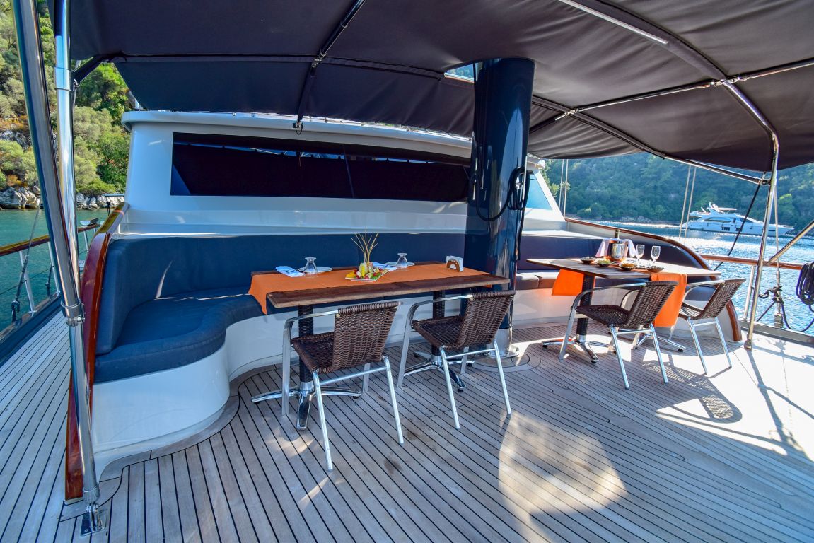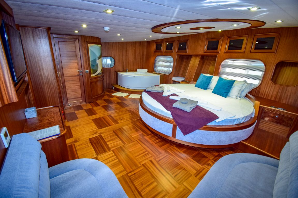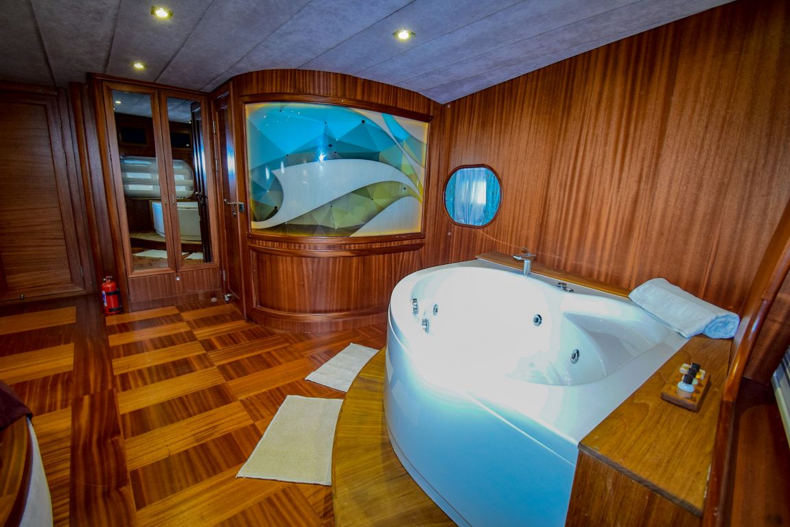 Она 32 метра с 7 каютами (2 люкса с джакузи, 2 мастер-каюты и 3 двухместные каюты) для размещения до 14 гостей. Каждая каюта полностью кондиционирована, имеет гардероб и ванную комнату с душем и туалетом в домашнем стиле. Гулет и яхта Ugur предоставляет профессиональный экипаж из 5 человек (капитан, повар, матрос, горничная и стюардесса) для высокого уровня гостеприимства. Ugur собирается удивить своих клиентов в этом сезоне своей ценой. |