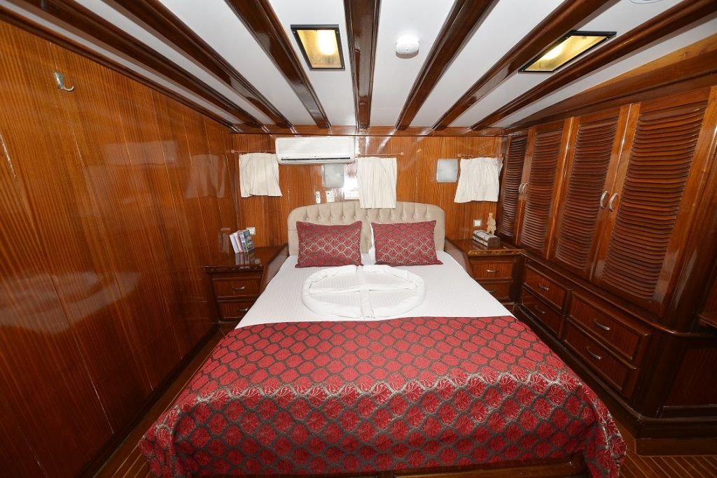 До 16 гостей; 6 двухместных, 2 двухместные каюты, кондиционер, гардероб, душевая кабина и туалеты домашнего типа во всех каютах, отдельные каюты для экипажа. |