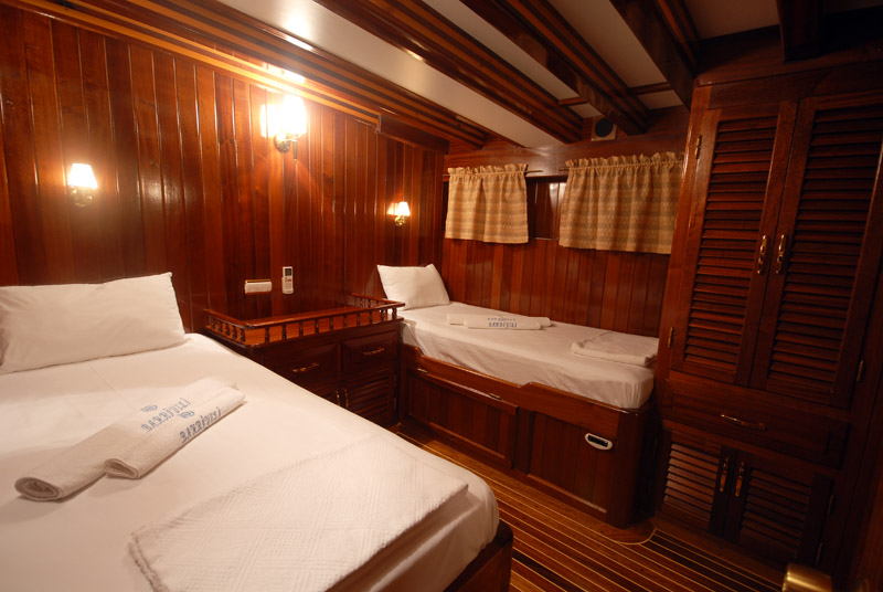 Наше 8-каютное Гулет и яхта имеет 2 двухместные и 6 двухместных кают с кондиционером, туалетом и душем в каждой каюте и может легко разместить в общей сложности 16 гостей. Большая и комфортабельная гостиная оборудована таким оборудованием, как телевизор, спутниковое телевидение и CD-плеер, чтобы сделать ваше время вне моря более приятным. Пока вы наслаждаетесь едой, приготовленной на нашей полностью оборудованной кухне, вы также можете открыть для себя все оттенки синего.