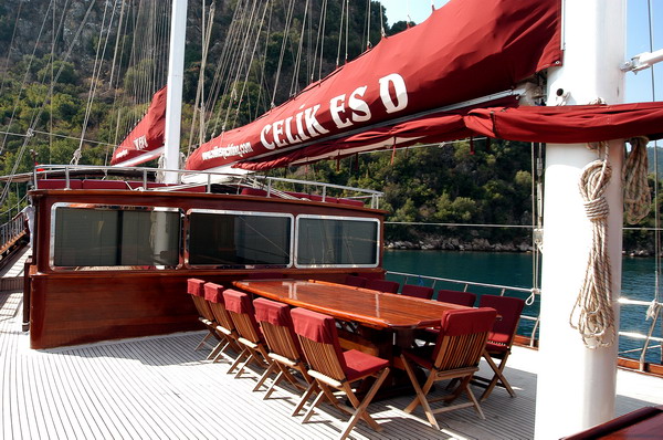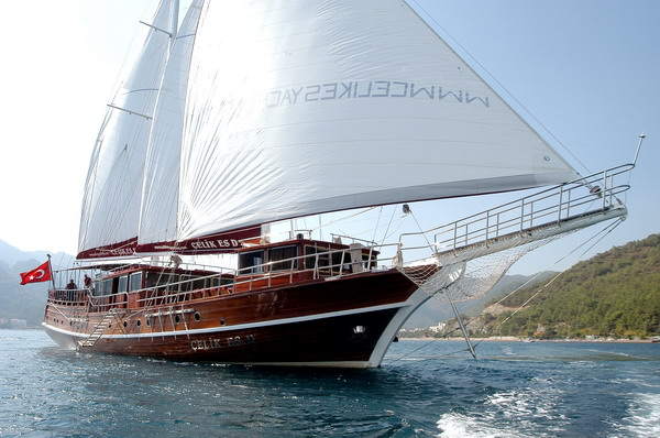 Гулет и яхта Celik Es D, один из самых красивых лодок в нашем флоте Гулет и яхта, обещает комфорт и удобство для больших групп и семей. Гулет и яхта Celik Es D, которая была впервые спущена на воду в 2005 году, была обновлена в 2014 году для вашего удобства и комфорта. Гулет и яхта Celik Es D лодка 32 м. При длине и ширине 8 метров она предлагает как комфортабельные каюты с кондиционером, так и удобную и просторную палубу. С лодкой Celik Es D вы можете выбрать любой из маршрутов Бодрум, Гёкова, Мармарис, Фетхие или объединить 2 синих круизных маршрута в соответствии с продолжительностью вашего отпуска и арендовать нашу Гулет и яхта на 14 дней.