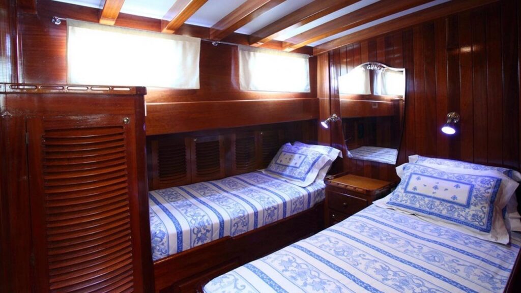 До 16 гостей; 4 двухместные, 4 двухместные каюты, кондиционер, гардероб, душевая кабина и туалеты домашнего типа во всех каютах, отдельные каюты для экипажа. |