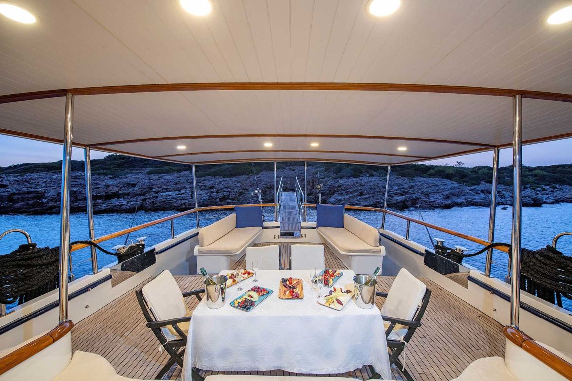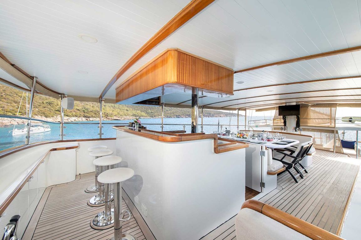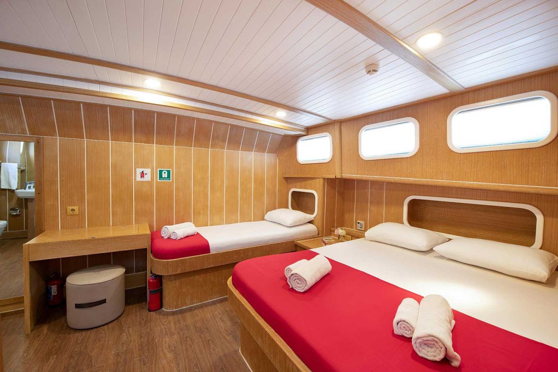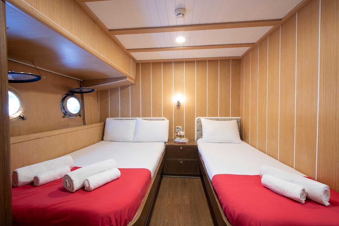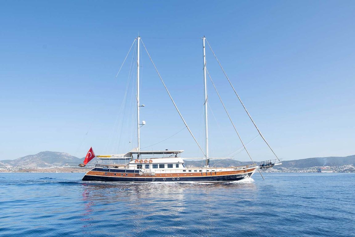 | Гулет Oguzbey — это 32-метровое судно, построенное в 1993 году и обновлённое в 2021 году. На борту восемь кают: две мастер-сьюта, две двухместные и четыре трёхместные, вмещающие до 22 гостей. Каждая каюта оснащена кондиционером и отдельной ванной комнатой; кондиционер работает по 18 часов в день. Ширина корпуса 7,3 метра обеспечивает просторные палубы с обеденной зоной на открытом воздухе, мягкими диванами и местами для загара. Внутренний салон комфортный, с обеденной зоной и камбузом. Для водных развлечений предлагаются тендер мощностью 115 л.с., SUP-доска, водные лыжи, вейкборд, ринго, банан, каноэ, снаряжение для снорклинга и рыбалки. Судно оснащено двумя двигателями Baudouin по 450 л.с. и двумя генераторами по 27 кВА, что позволяет развивать скорость 11 узлов. Oguzbey идеально подходит для больших групп, которые ценят комфорт и активный отдых. |