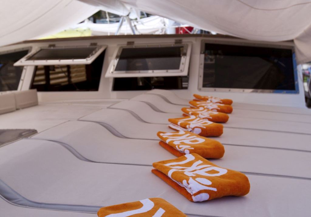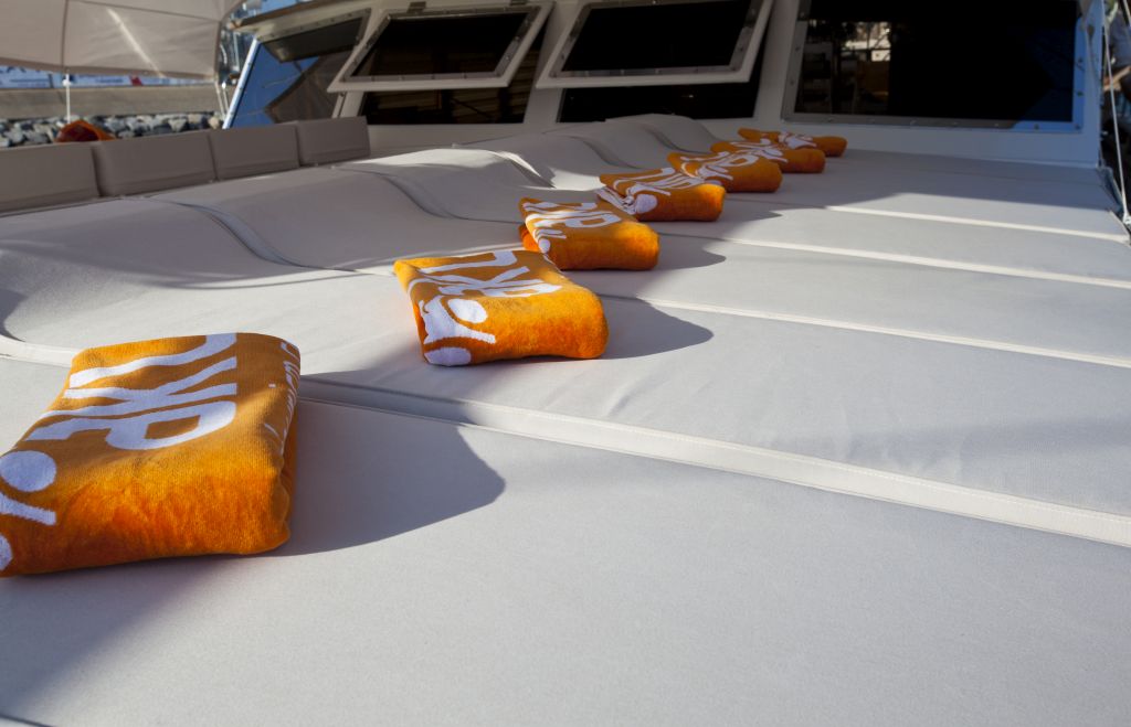 | Подвесной двигатель, каноэ, рыболовное и подводное снаряжение, парусное снаряжение, с палубной зоной, навигационное оборудование, спутниковое телевидение, спасательное оборудование, душ на палубе, матрасы для загара, оборудованная кухня, крытая столовая, телевизор и DVD-плеер в каютах, мини-бар, подключение iPod, музыкальная система в холле, ледогенератор, мини-бар, радио VHF, телевизор/DVD/CD-плеер, GPS, подключение к Интернету |