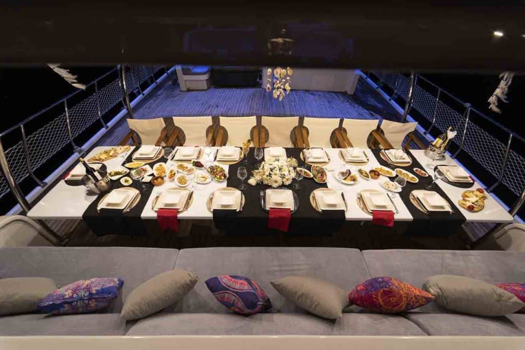 Гулет и яхта Queen Of RTT, один из самых красивых лодок в нашем флоте Гулет и яхта, обещает комфорт и удобство для больших групп и семей. Гулет и яхта Queen Of RTT, которая была впервые спущена на воду в 2009 году, была обновлена в 2021 году для вашего удобства и комфорта. Лодка Queen Of RTT 32 м. При длине и ширине 7,50 метров она предлагает как комфортабельные каюты с кондиционером, так и удобную и просторную палубу. С лодкой Queen Of RTT вы можете выбрать любой из маршрутов Бодрум, Гёкова, Мармарис, Фетхие или объединить 2 синих круизных маршрута в соответствии с продолжительностью вашего отпуска и арендовать нашу Гулет и яхта на 14 дней. Наша 8-каютная Гулет и яхта имеет 8 двухместных кают, включая кондиционер, туалет и душ в каждой каюте, и может легко разместить в общей сложности 16 гостей. Большая и удобная гостиная оснащена таким оборудованием, как телевизор, спутниковое телевидение и CD-плеер, чтобы сделать ваше время вне моря более приятным. Пока вы наслаждаетесь едой, приготовленной на нашей полностью оборудованной кухне, вы также можете открыть для себя все оттенки синего. На нашем Гулет и яхта есть 6 опытных сотрудников, и наш персонал будет обслуживать вас, готовить еду, ежедневно убирать и выполнять все другие необходимые вам вопросы. Мы гарантируем стопроцентное удовлетворение клиентов на нашей яхте на основе отзывов и рекомендаций, которые мы получили от наших клиентов в последние годы во время аренды, которую мы сделали в Бодруме с нашим Гулет и яхта Queen Of RTT. Мы приглашаем вас исследовать берега Бодрума - Гёкова - Мармарис - Хисароню - Гёчек - Фетхие с Queen Of RTT. |