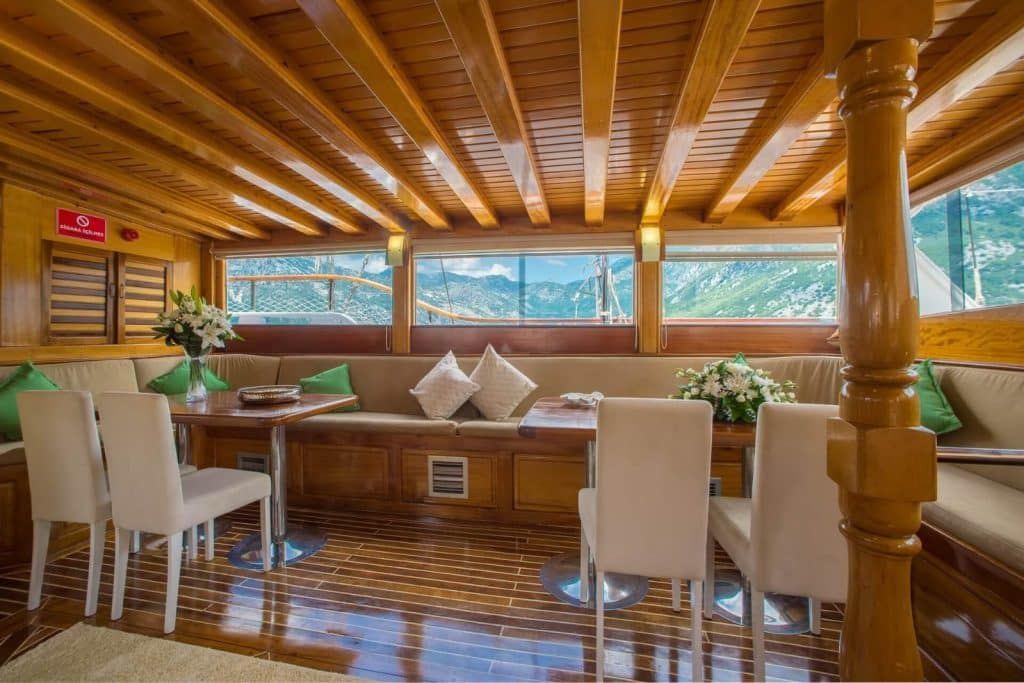 Наша 8-каютная Гулет и яхта имеет 6 двухместных и 2 двухместных каюты с кондиционером, туалетом и душем в каждой каюте и может легко разместить в общей сложности 16 гостей. Большая и удобная гостиная оснащена таким оборудованием, как телевизор, спутниковое телевидение и CD-плеер, чтобы сделать ваше время вне моря более приятным. Пока вы наслаждаетесь блюдами, приготовленными на нашей полностью оборудованной кухне, вы также можете открыть для себя все оттенки синего.