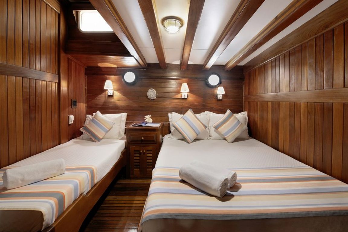 | Вместимость до 16 гостей; 5 двухместных, 1 трехместная, 2 двухместные каюты с двумя кроватями, кондиционер, душевая кабина и туалеты домашнего типа во всех каютах, отдельные каюты для экипажа. |