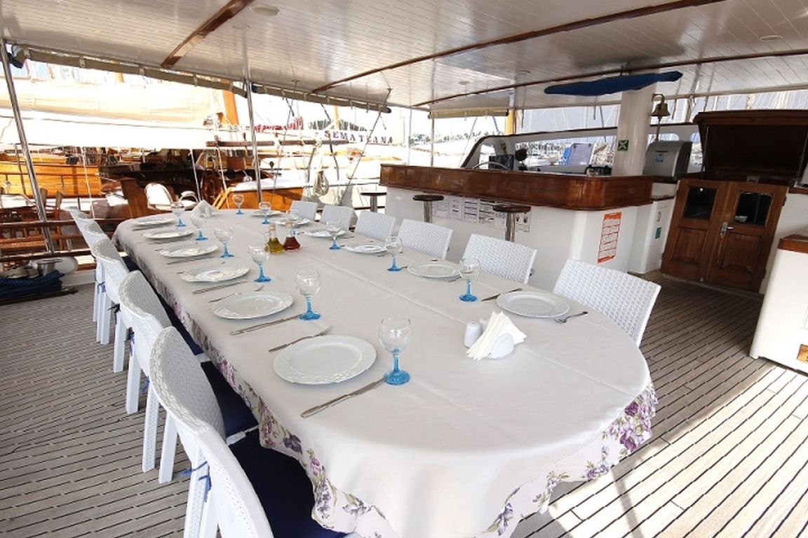На нашей Гулет и яхте 5 опытных сотрудников, и наш персонал будет обслуживать вас, готовить еду, ежедневно убирать и выполнять все другие необходимые вам вопросы. Мы гарантируем стопроцентное удовлетворение клиентов на нашей яхте, основываясь на отзывах и рекомендациях, которые мы получили от наших клиентов за последние годы во время аренды, которую мы осуществили с нашей Гулет и яхта Cemre 4 в Бодруме. Мы приглашаем вас исследовать побережья Бодрума - Гёкова - Мармарис - Хисароню - Гёчек - Фетхие с Гулет и яхта Cemre 4.