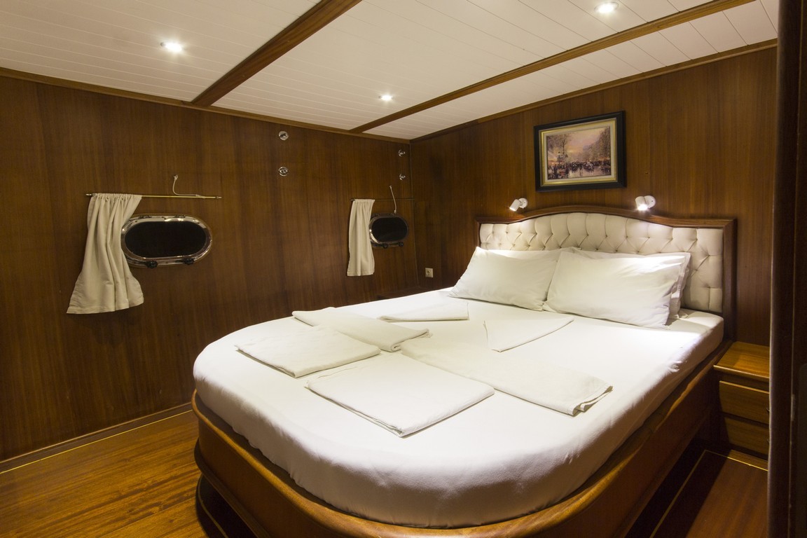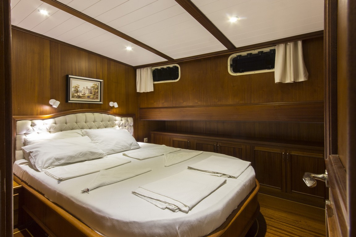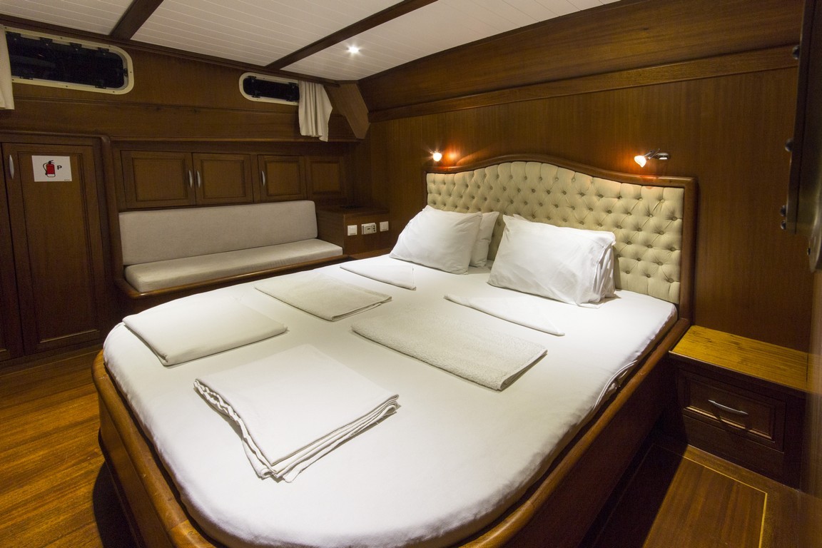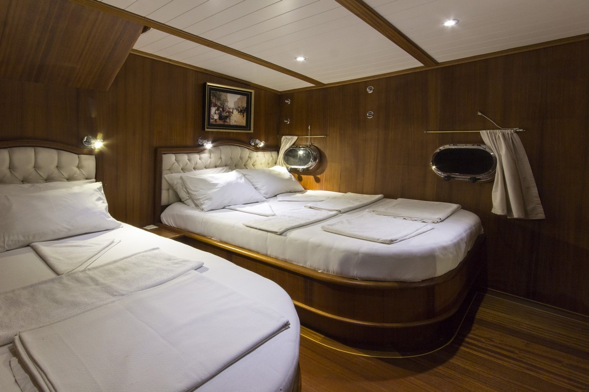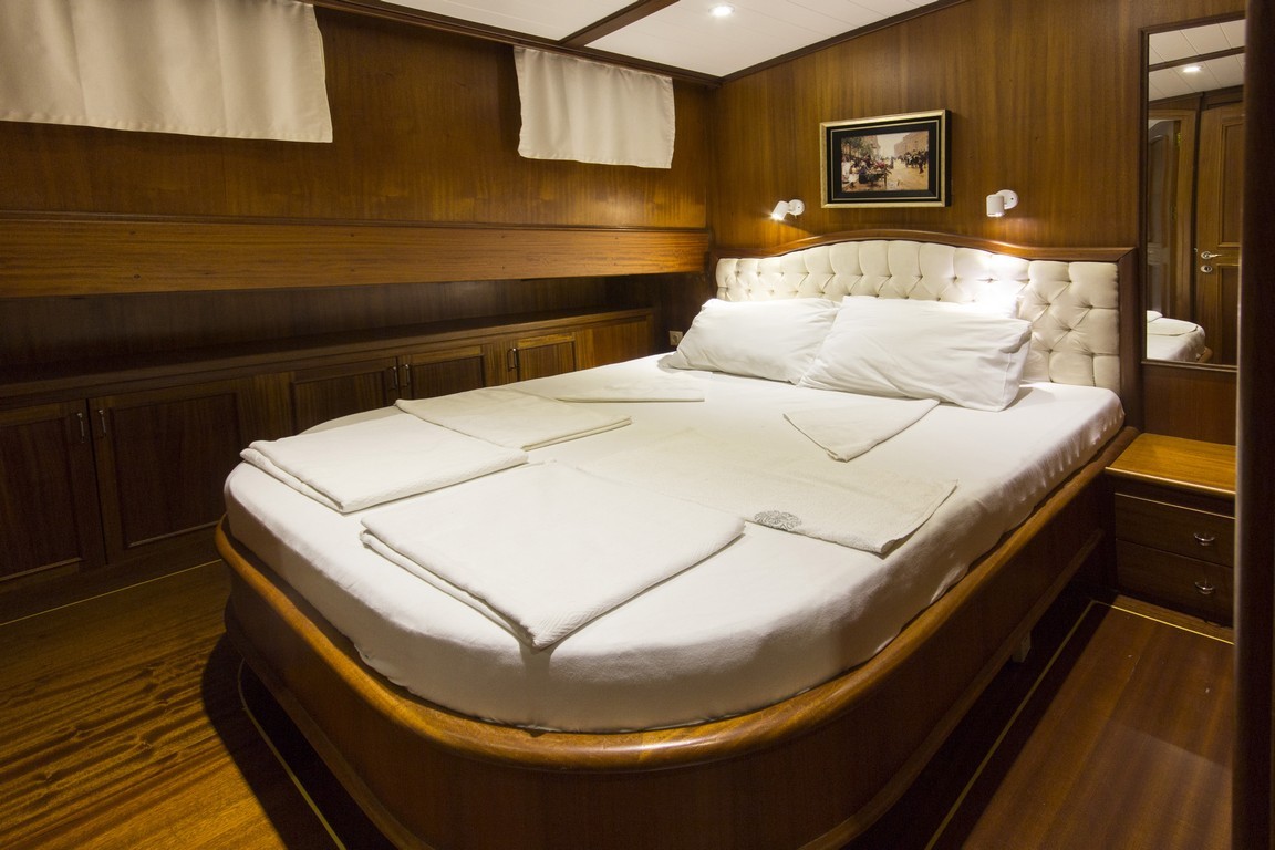 Наша 9-каютная Гулет и яхта имеет 1 главную, 6 двухместных и 2 двухместные каюты с кондиционером, туалетом и душем в каждой каюте и может легко разместить в общей сложности 18 гостей. Большая и удобная гостиная оснащена оборудованием, таким как телевизор, спутниковое телевидение и CD-плеер, чтобы сделать ваше время вне моря более приятным. Пока вы наслаждаетесь едой, приготовленной на нашей полностью оборудованной кухне, вы также можете открыть для себя все оттенки синего.