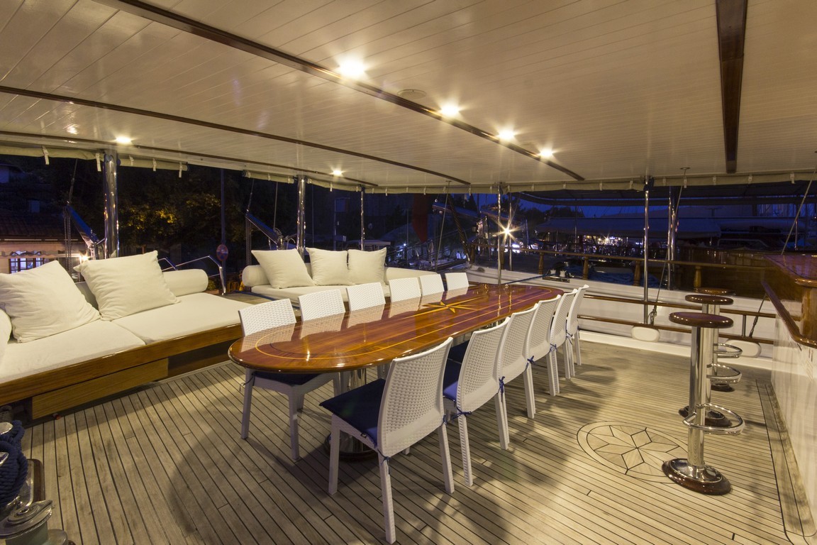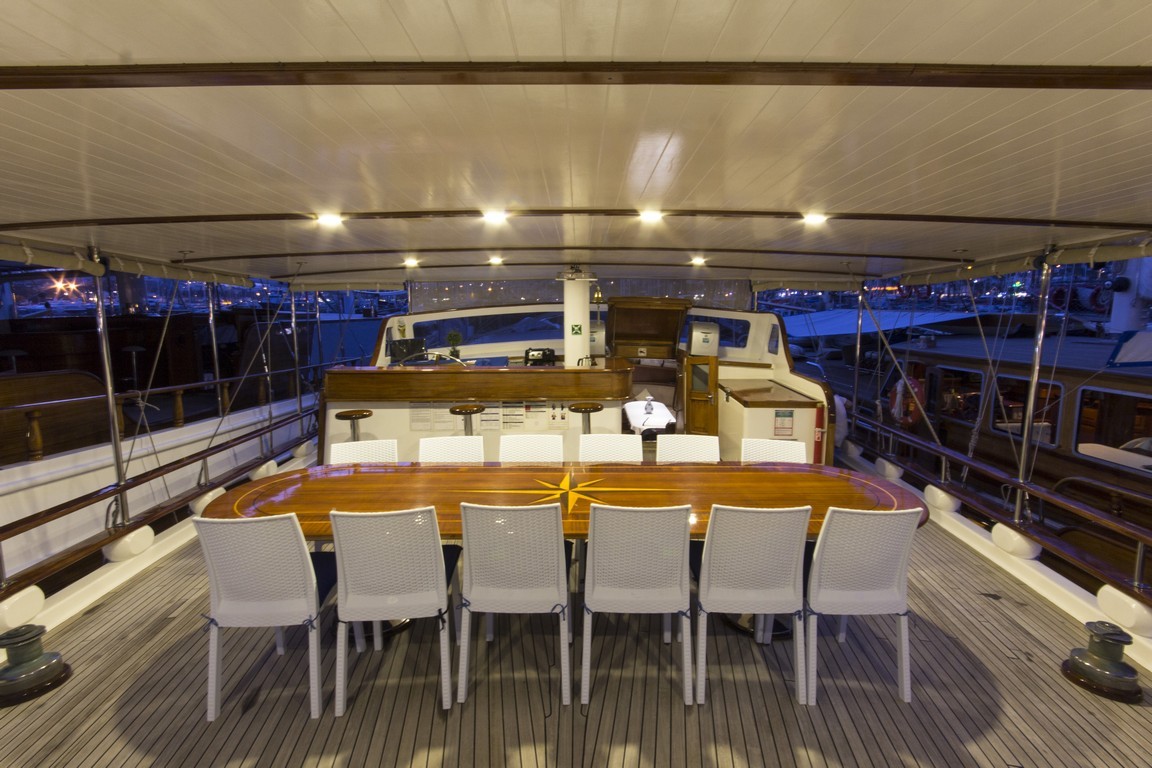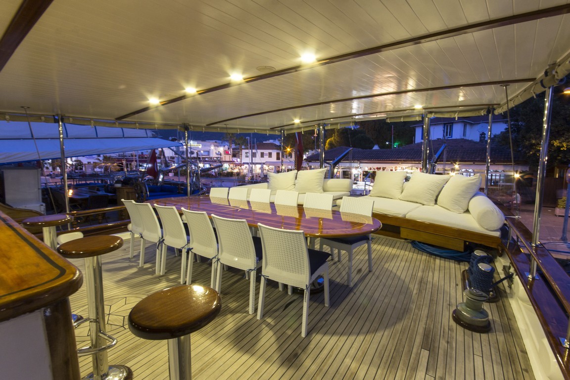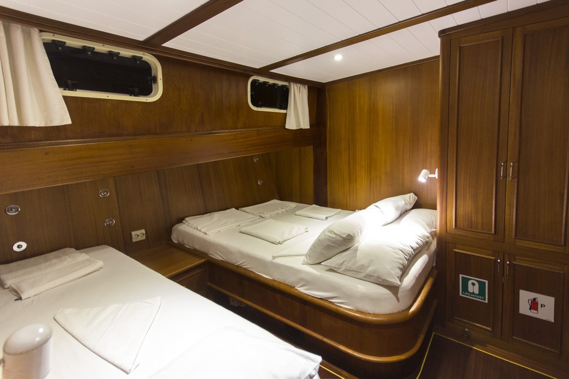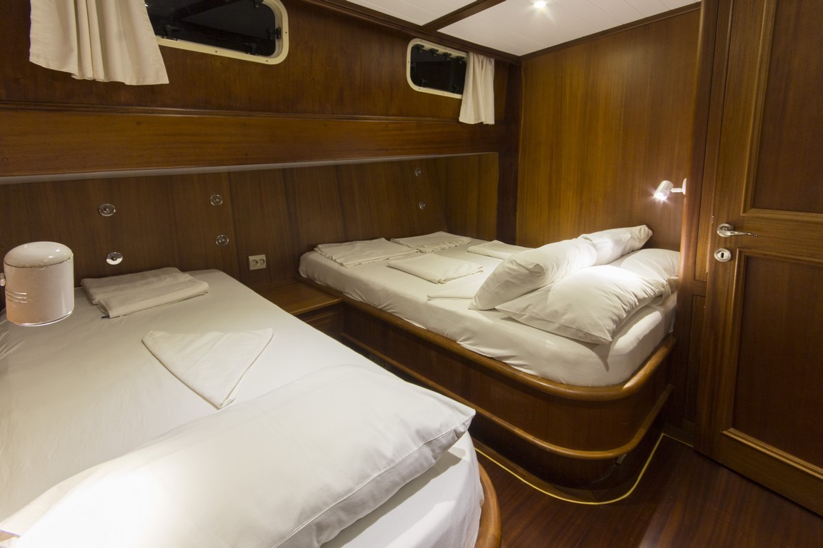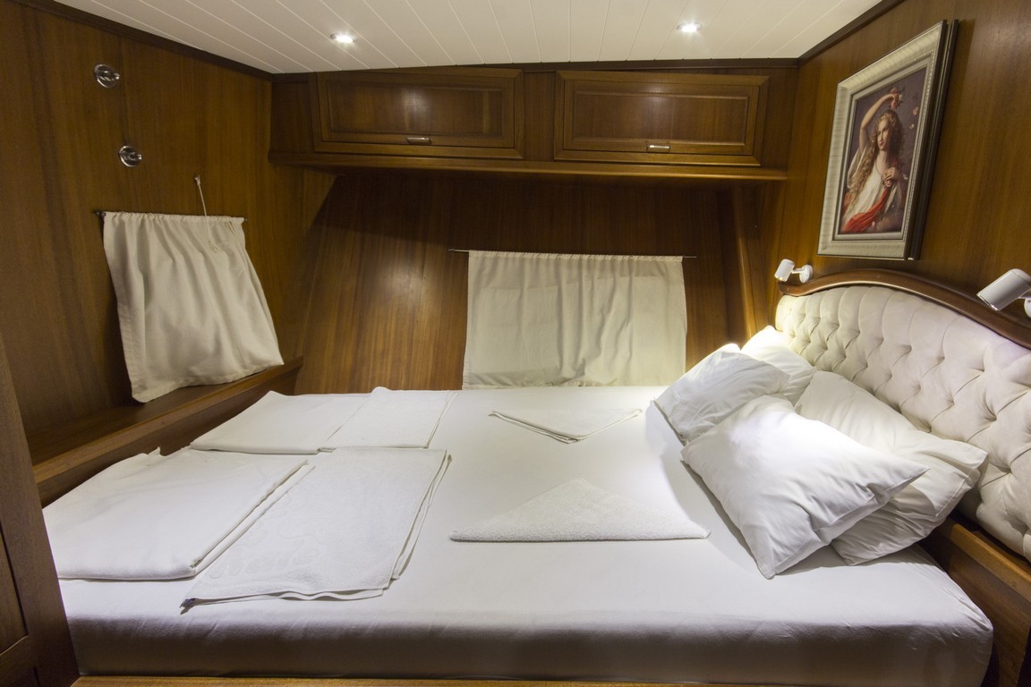 Наша 9-каютная Гулет и яхта имеет 1 главную, 6 двухместных и 2 двухместные каюты с кондиционером, туалетом и душем в каждой каюте и может легко разместить в общей сложности 18 гостей. Большая и удобная гостиная оснащена оборудованием, таким как телевизор, спутниковое телевидение и CD-плеер, чтобы сделать ваше время вне моря более приятным. Пока вы наслаждаетесь едой, приготовленной на нашей полностью оборудованной кухне, вы также можете открыть для себя все оттенки синего.