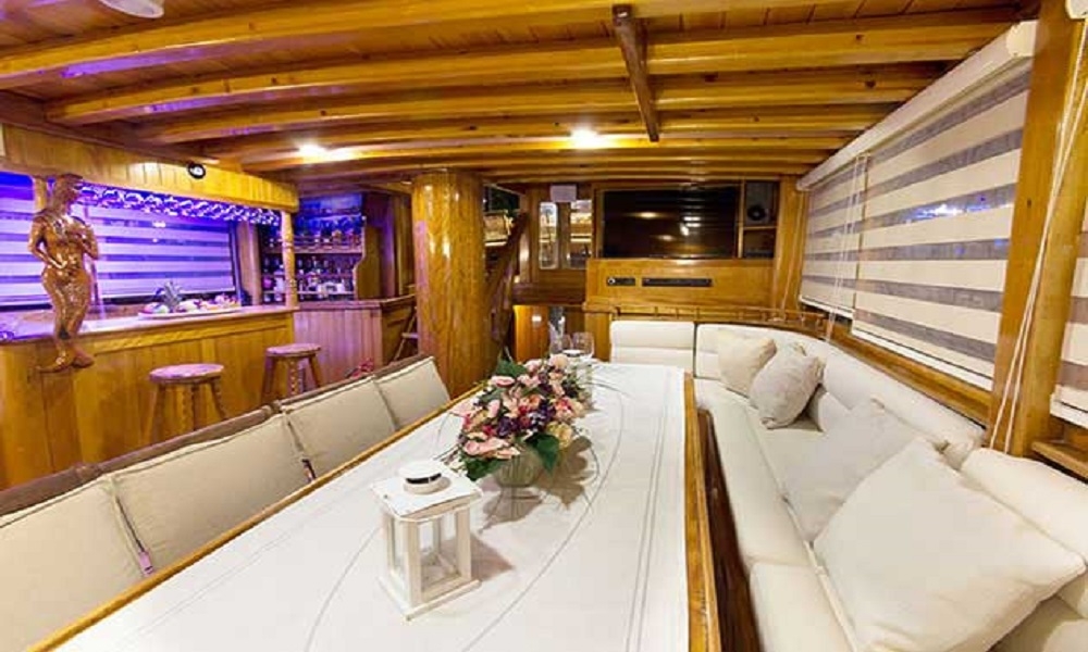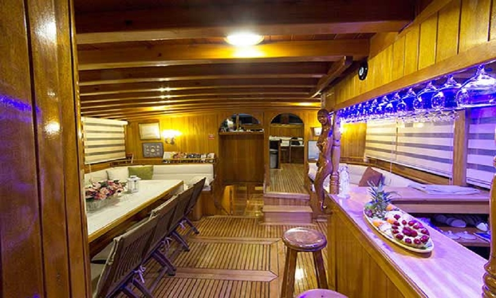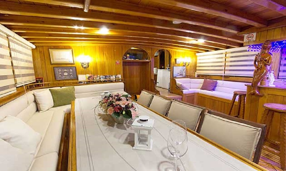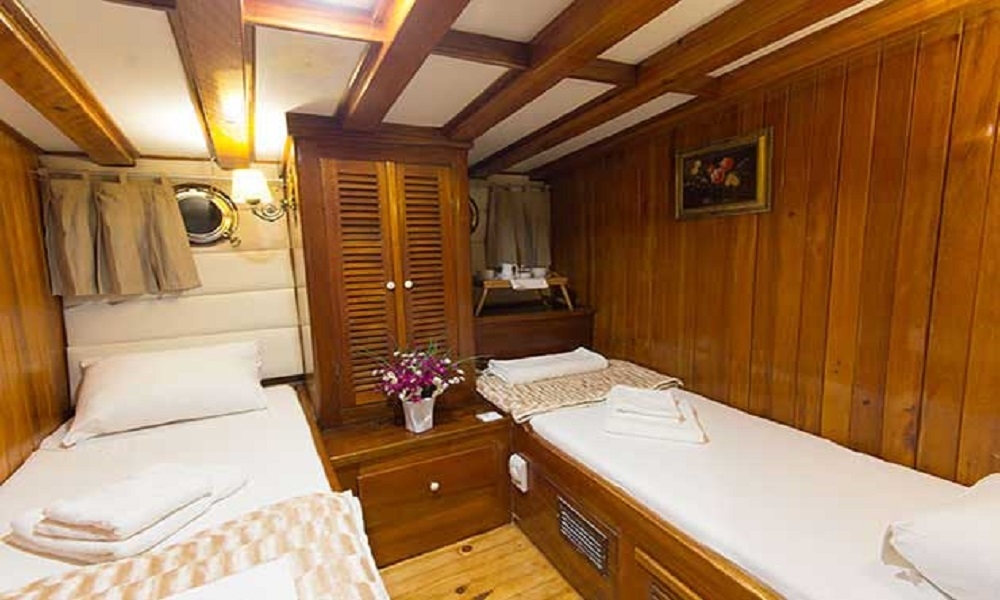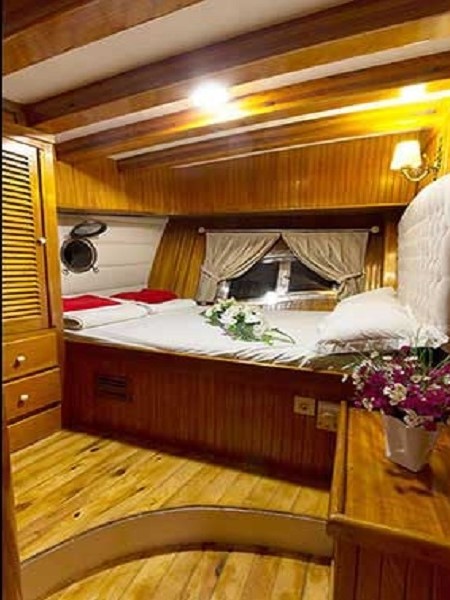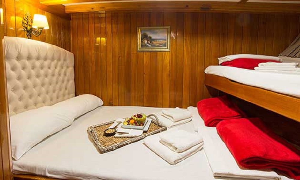 | До 24 гостей; 1 двухместная, 6 трехместных, 2 двухместные каюты, кондиционер в салоне и во всех каютах, телевизор во всех каютах, душевая кабина и туалеты домашнего типа во всех каютах, отдельные каюты для экипажа |