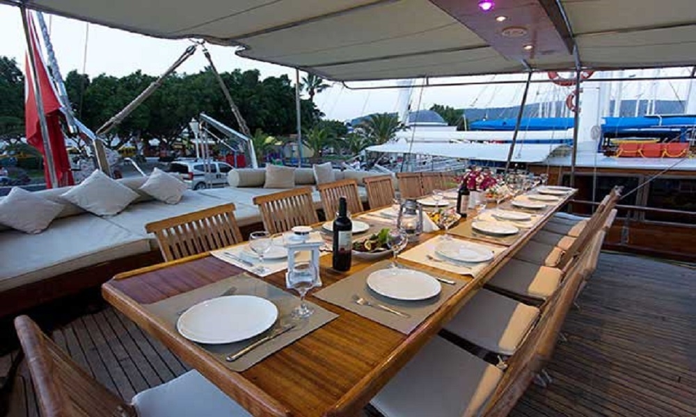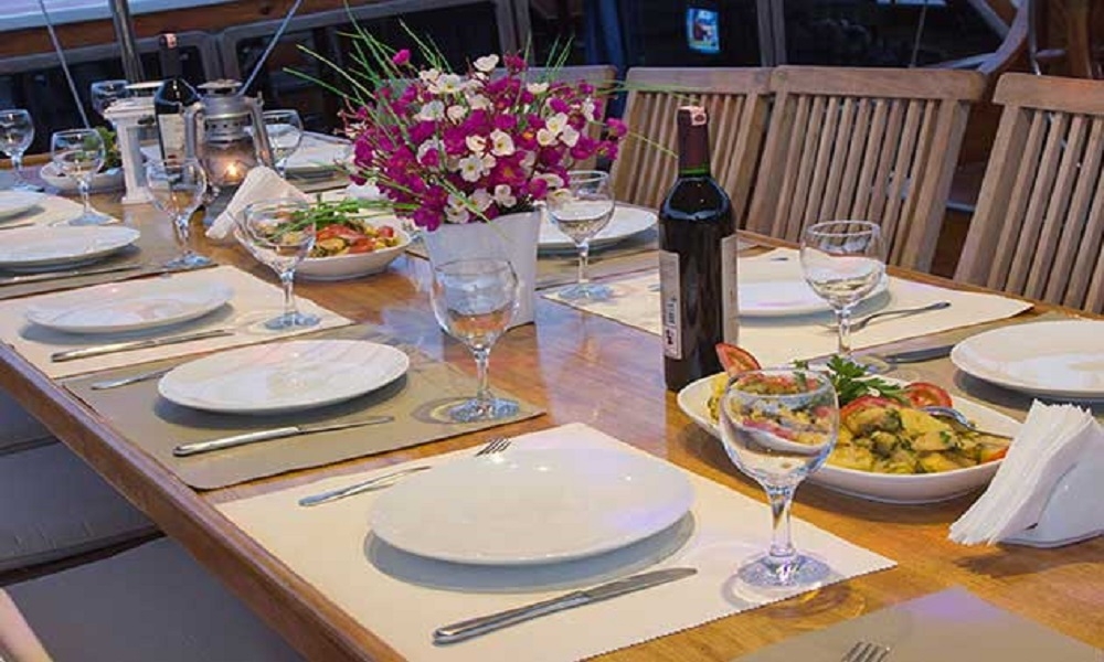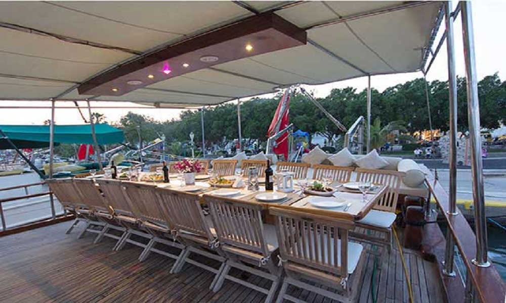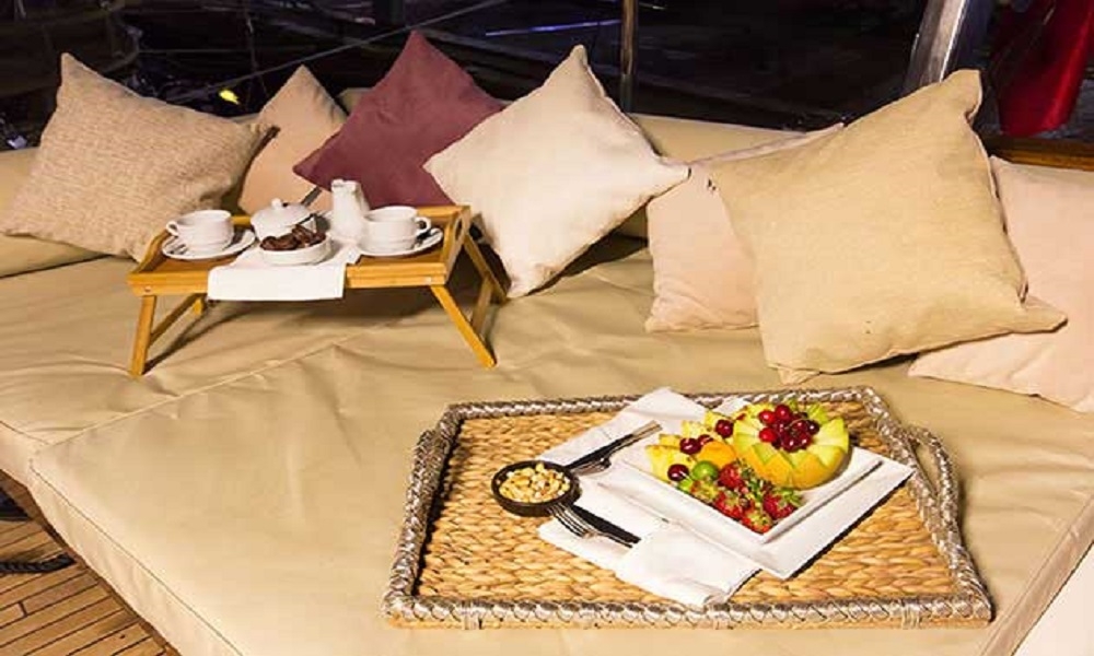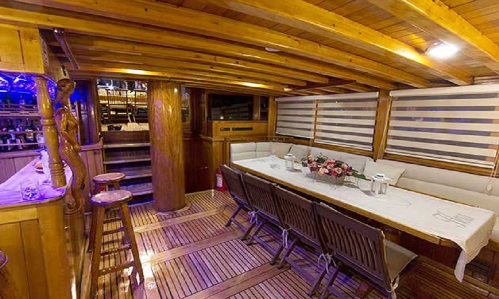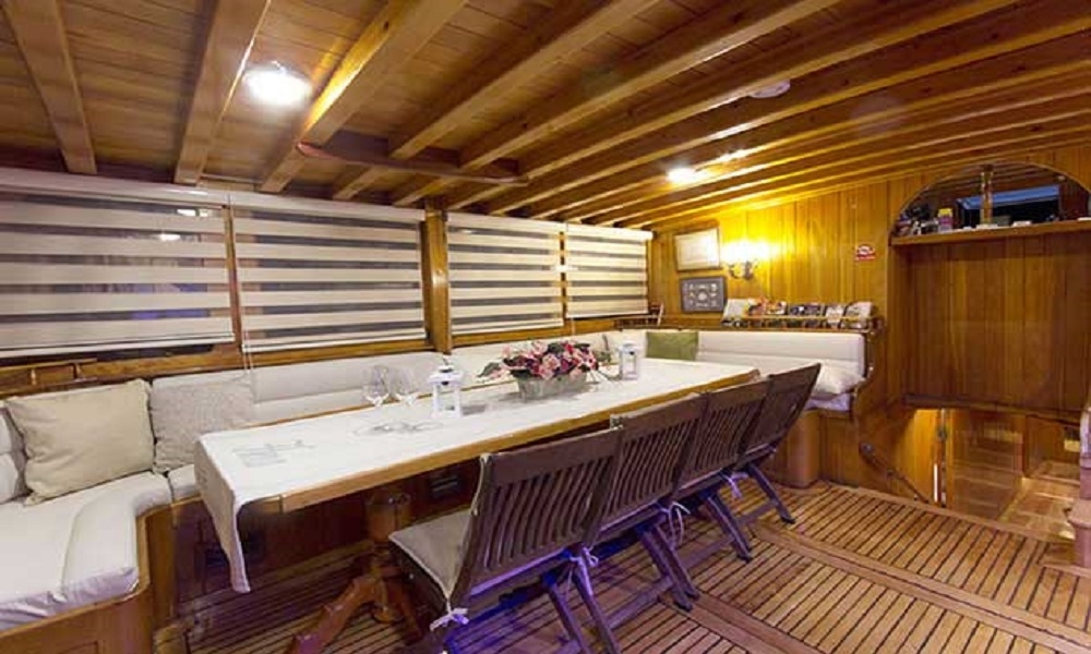 | До 24 гостей; 1 двухместная, 6 трехместных, 2 двухместные каюты, кондиционер в салоне и во всех каютах, телевизор во всех каютах, душевая кабина и туалеты домашнего типа во всех каютах, отдельные каюты для экипажа |