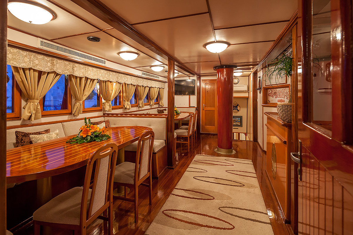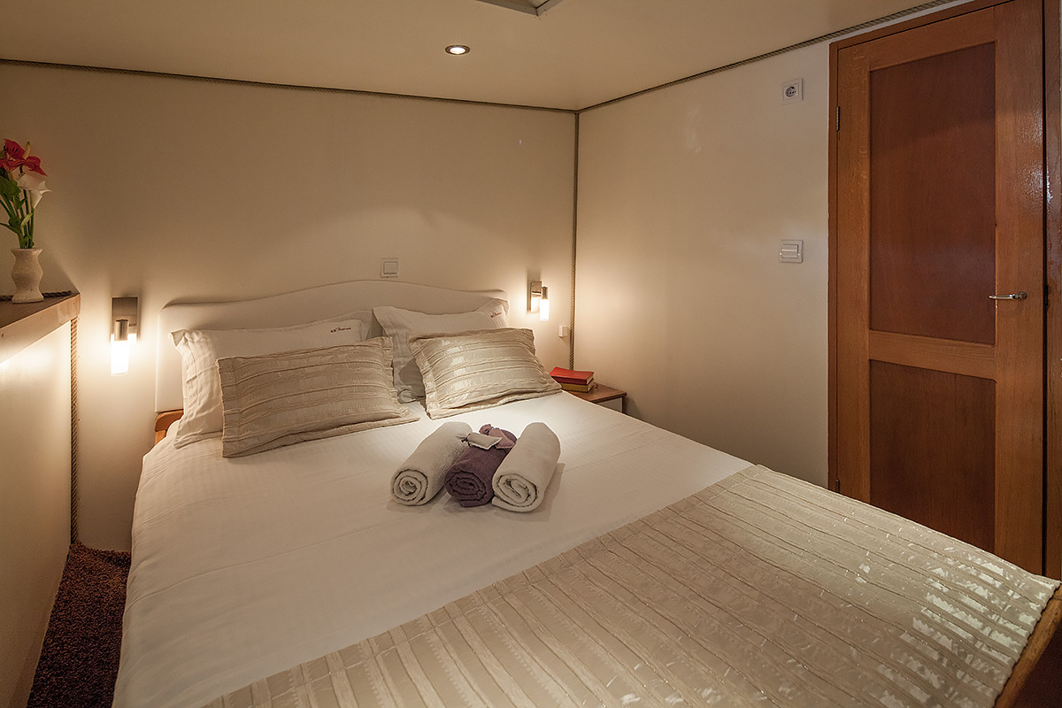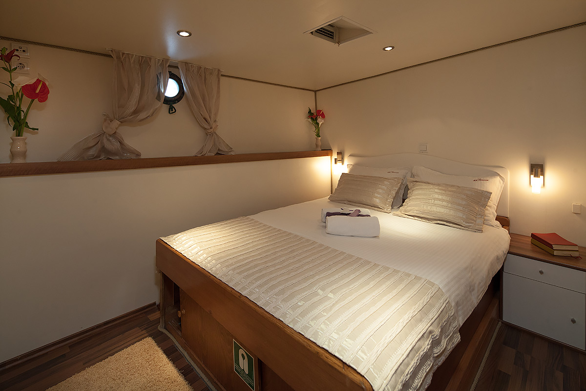 | До 18 гостей; 9 двухместных кают, кондиционер в салоне и во всех каютах, телевизор во всех каютах, душевая кабина и туалеты домашнего типа во всех каютах, отдельные каюты для экипажа |