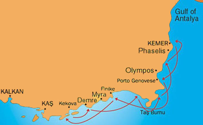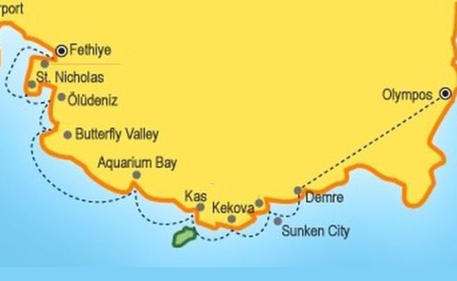 | МАРШРУТ 14 Фетхие - Олимпос | 3 ночи / 4 дня | мини круиз | Отправление: Суббота | С лодкой с кондиционером |