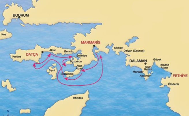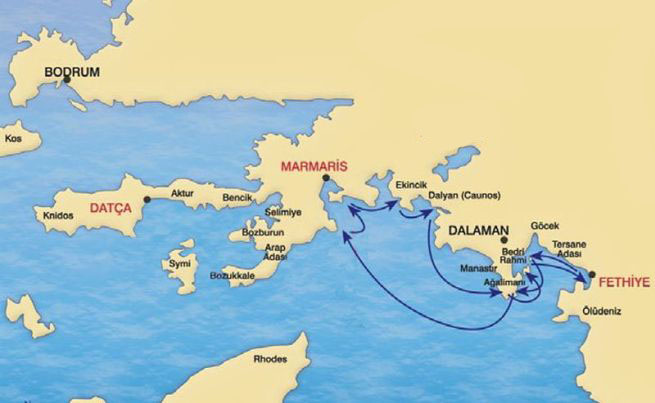 | МАРШРУТ 8 Мармарис - Фетхие | 3 ночи / 4 дня | Маршрут в одну сторону | мини круиз | Отправление: Субботам | Обычный с Стандарт Плюс Гулет |