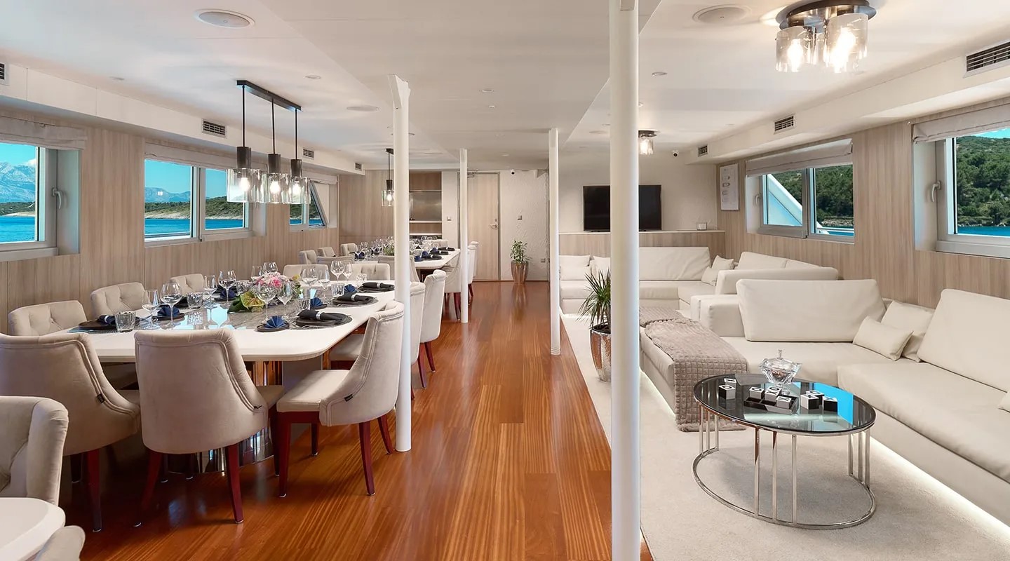 Яхта Cristal может разместить до 30 гостей в своих завораживающих 15 каютах с собственным туалетом и туалет. |