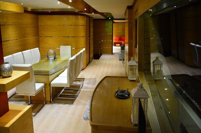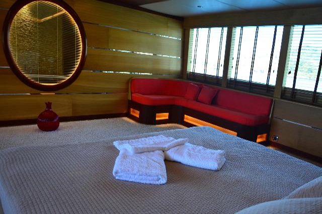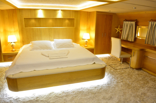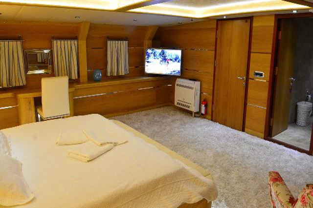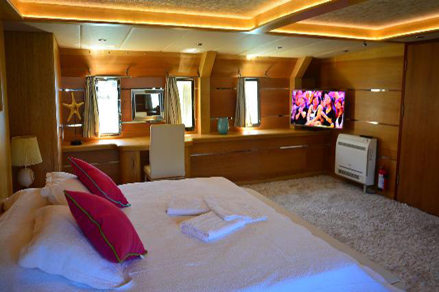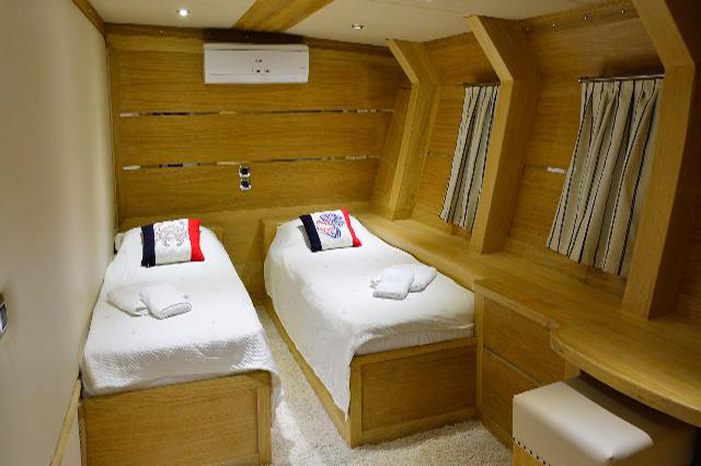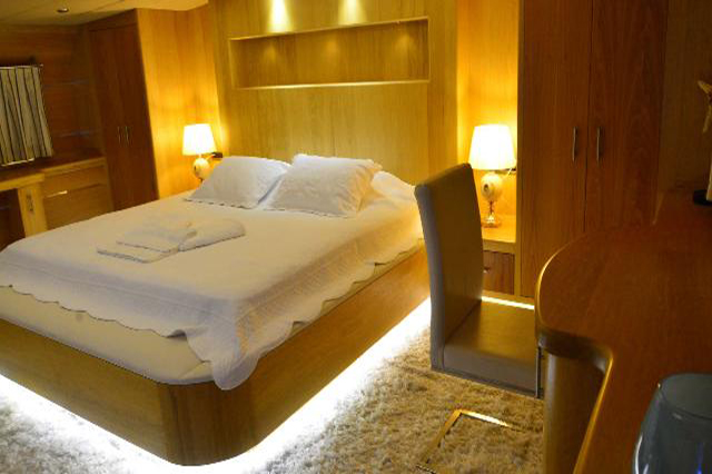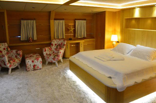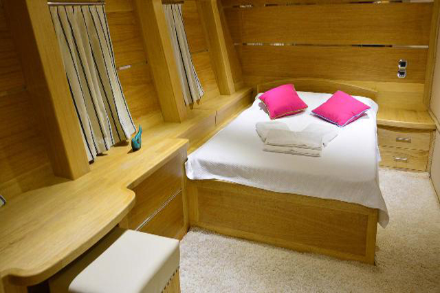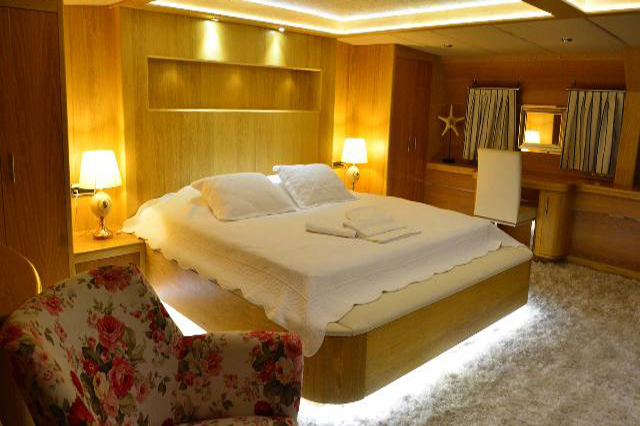| До 10 гостей; 1 главный, 2 VIP, 1 двухместный, 1 двухместный каюты с душем и туалетом |