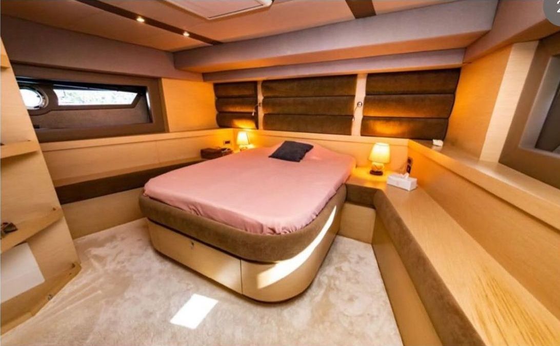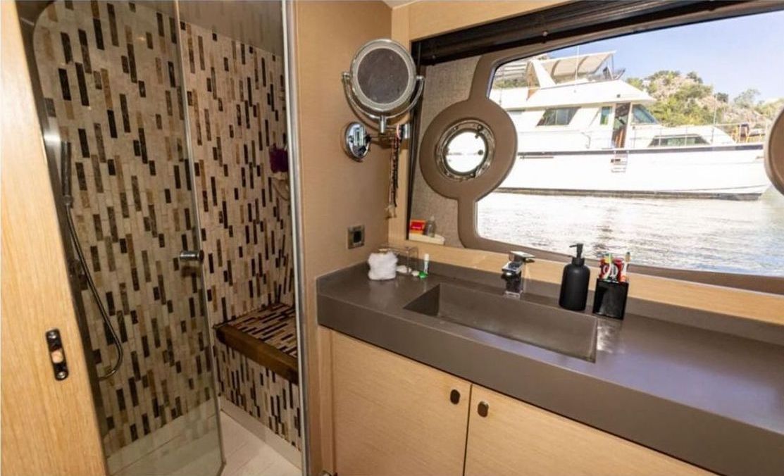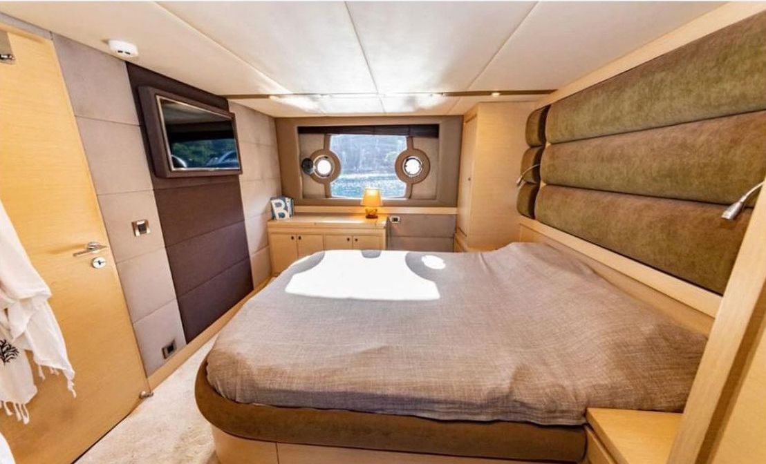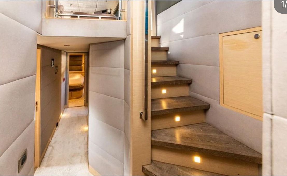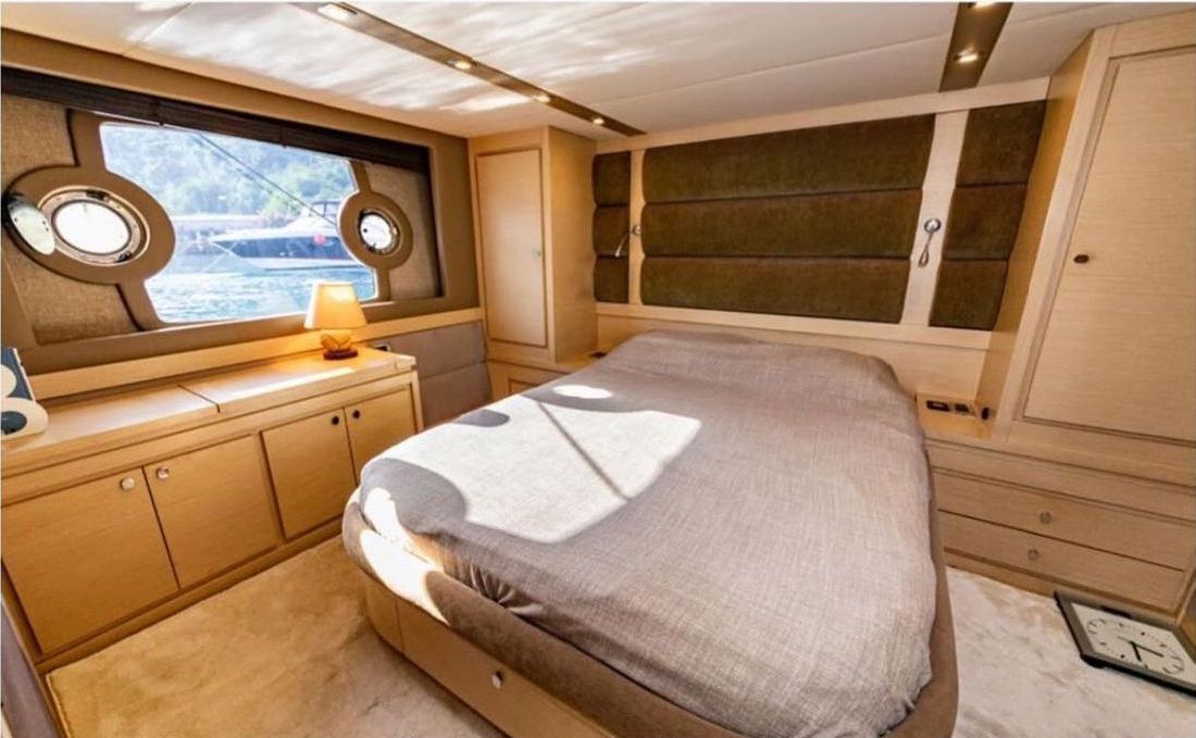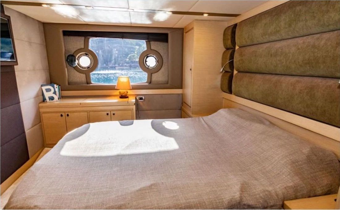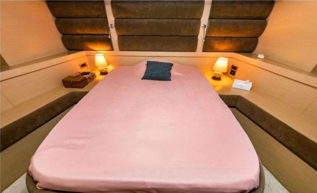 До 8 гостей; 1 VIP, 1 главный, 2 гостевые каюты, кондиционеры, душевые кабины в ванных комнатах, отдельные каюты для экипажа. |
