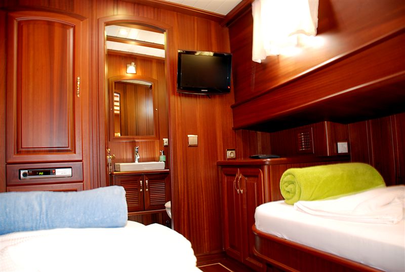 | 8 гостей; 4 каюты; 2 двухместные, 2 двухместные каюты, кондиционер, душ и туалет в каждой каюте |