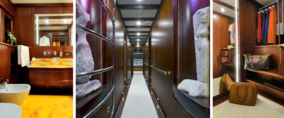 | 12 гостей; 6 кают; 2 главные каюты, 3 двухместные каюты, 1 двухместная каюта с душем и туалетом. |