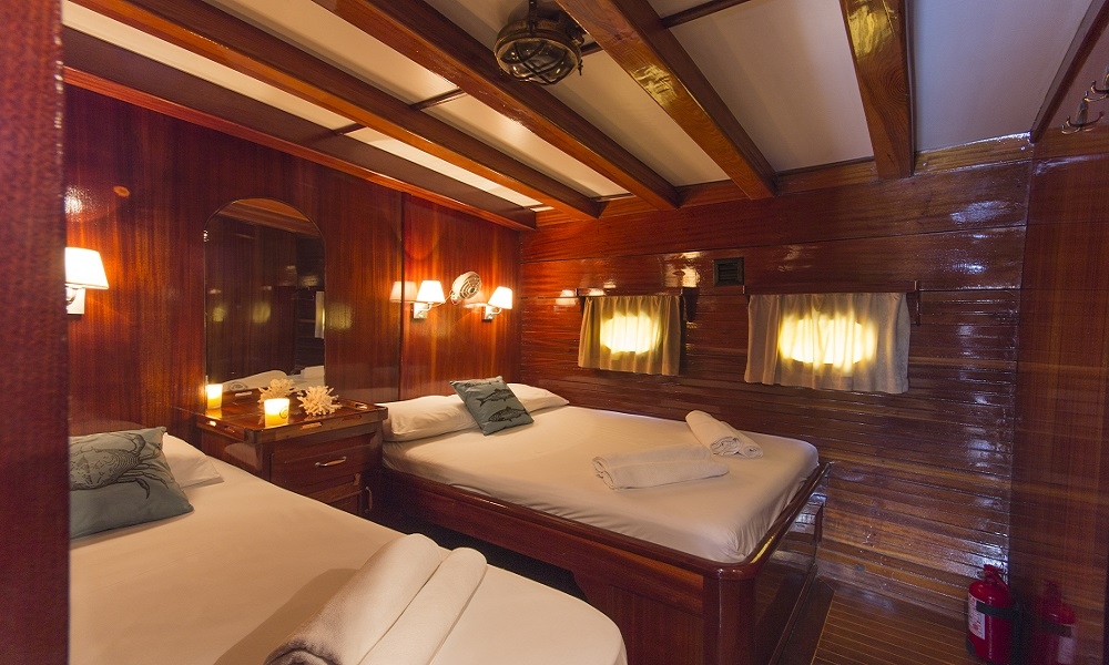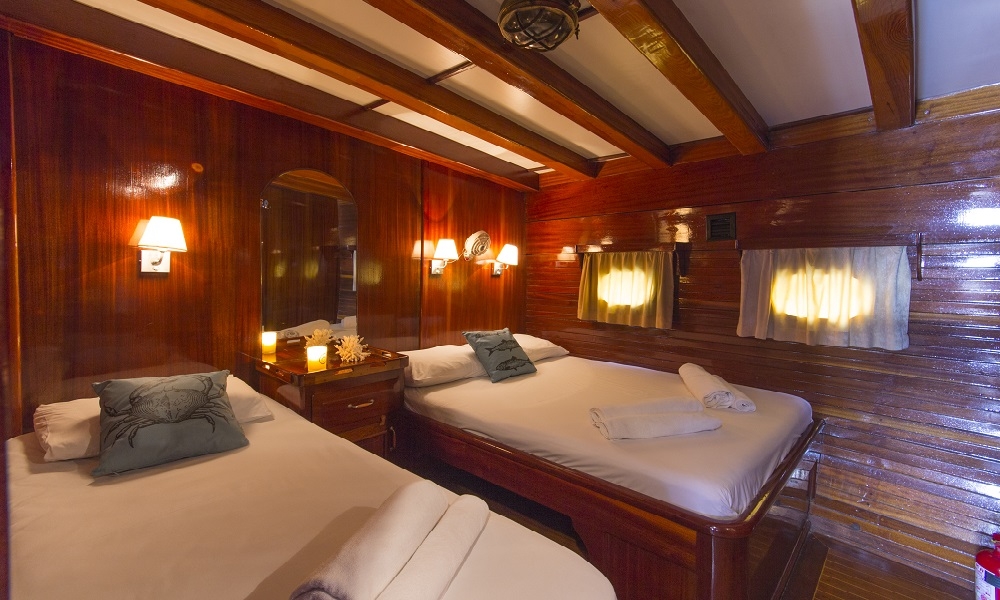 | 16 гостей; 8 кают; 4 двухместные каюты, 4 трехместные каюты с душем и туалетом |