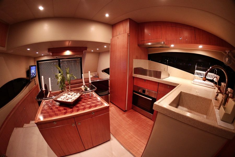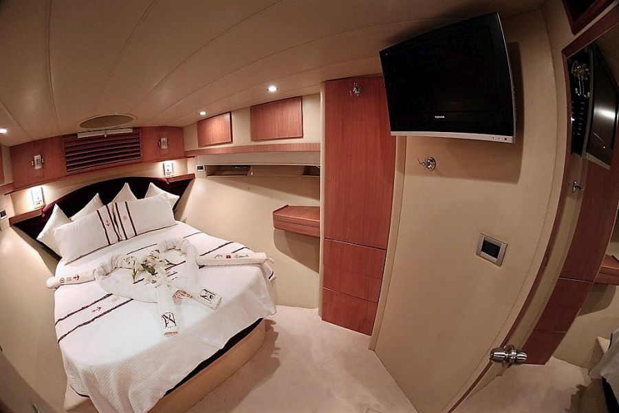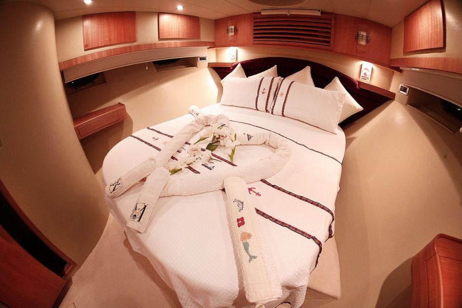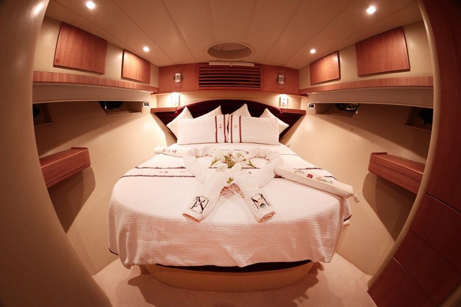 | Вместимость до 6 гостей; 3 каюты; 1 главная каюта + 2 стандартные каюты. Вся лодка изготовлена из тикового дерева. В каждой каюте имеется индивидуальный кондиционер мощностью 18 000 БТЕ, который хранится под кроватью для использования в качестве холода и тепла. |