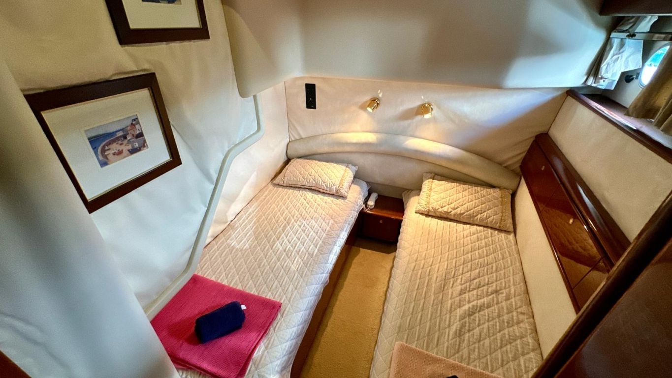 | До 4 гостей; 3 каюты. Все каюты оборудованы ванными комнатами, туалетами, кондиционерами. Отдельные каюты для экипажа. |