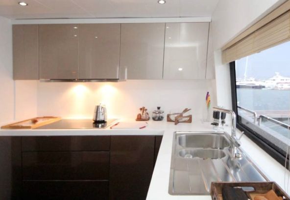 | Вместимость до 8 гостей; 4 каюты; ЖК-телевизор и DVD во всех каютах, спутниковое телевидение, Wi-Fi, музыкальная система в салоне и всех каютах, динамики на палубе |
